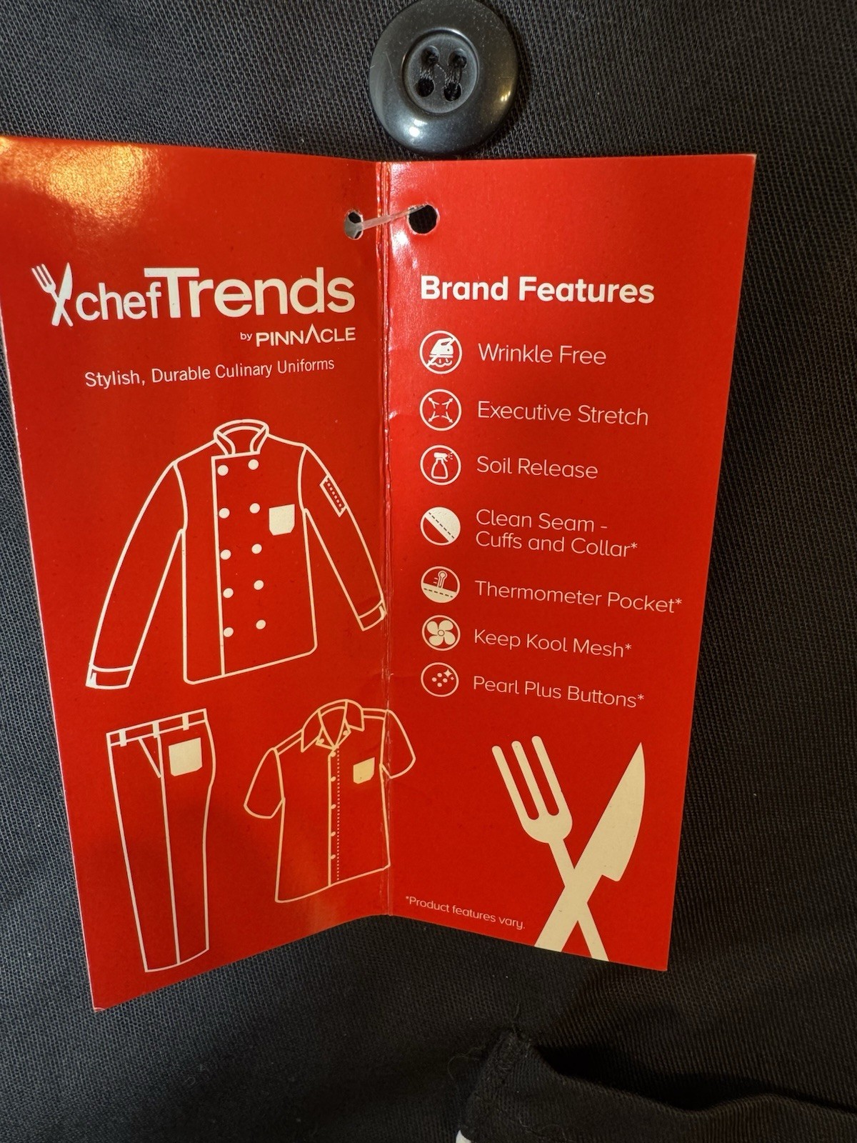 Chef Trends Pinnacle Double Breasted Black Chef Jacket Coat Culinary Uniform XL