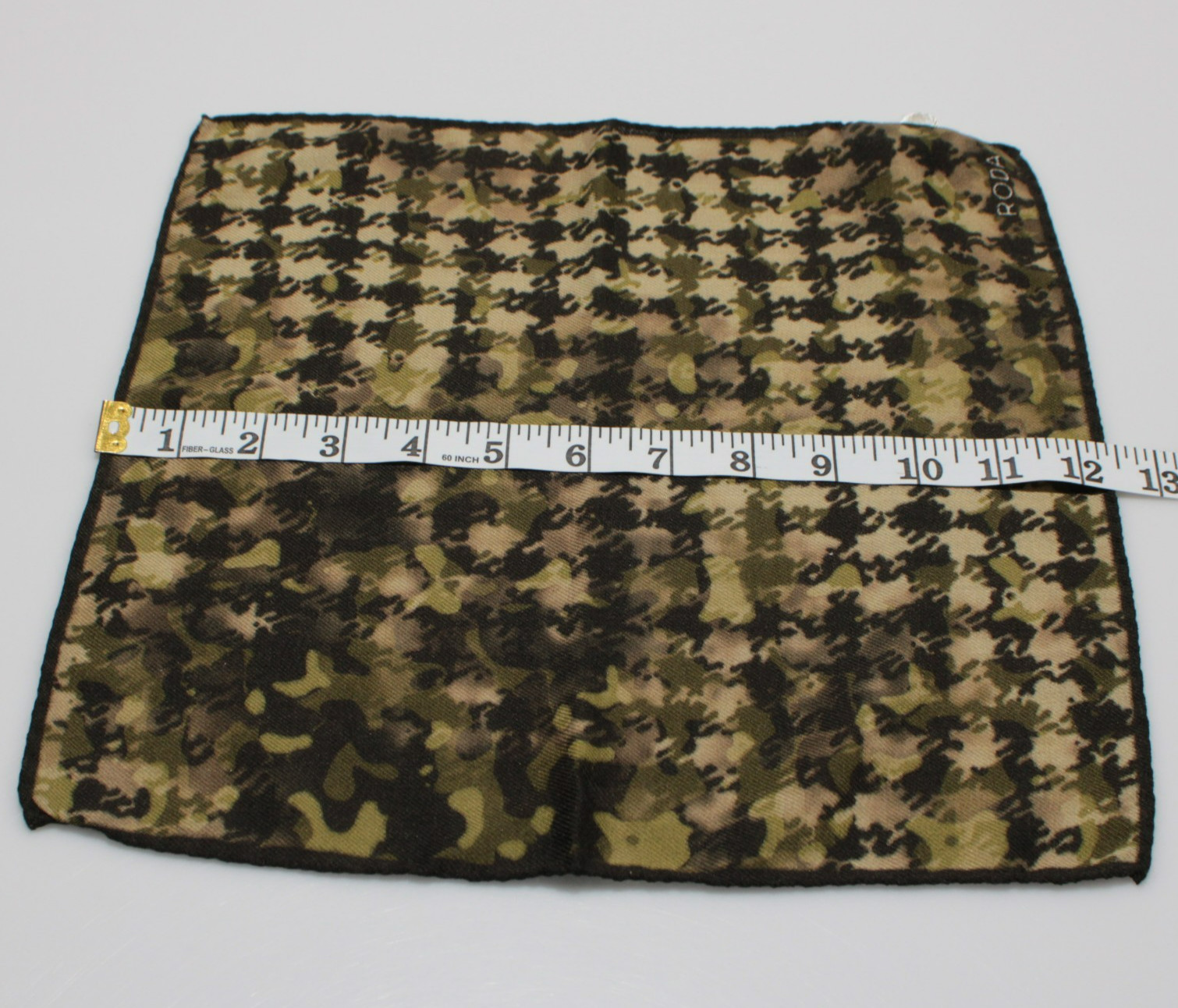 Roda NWT Wool/Silk Blend Pocket Square In Green, Beige Brown Camouflage