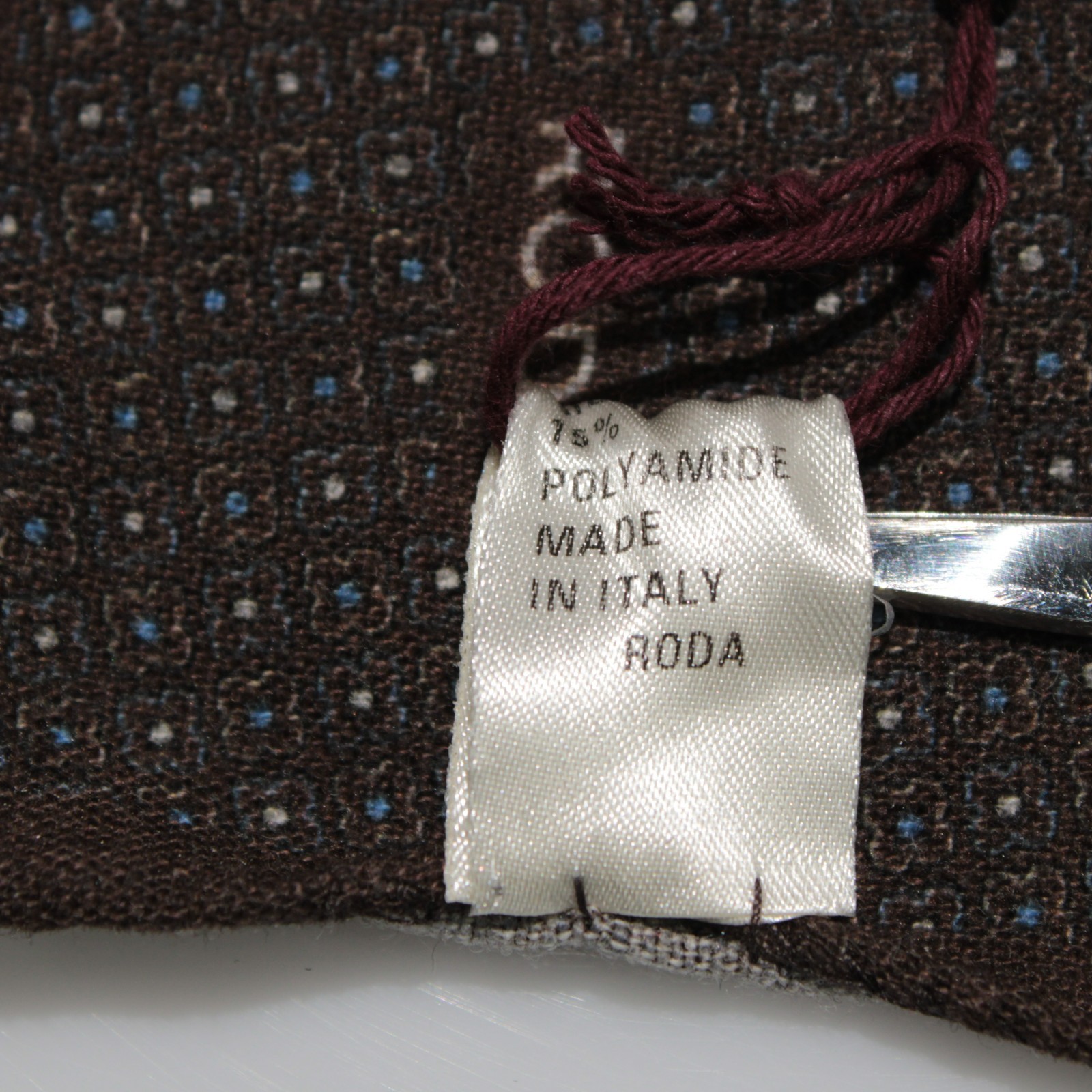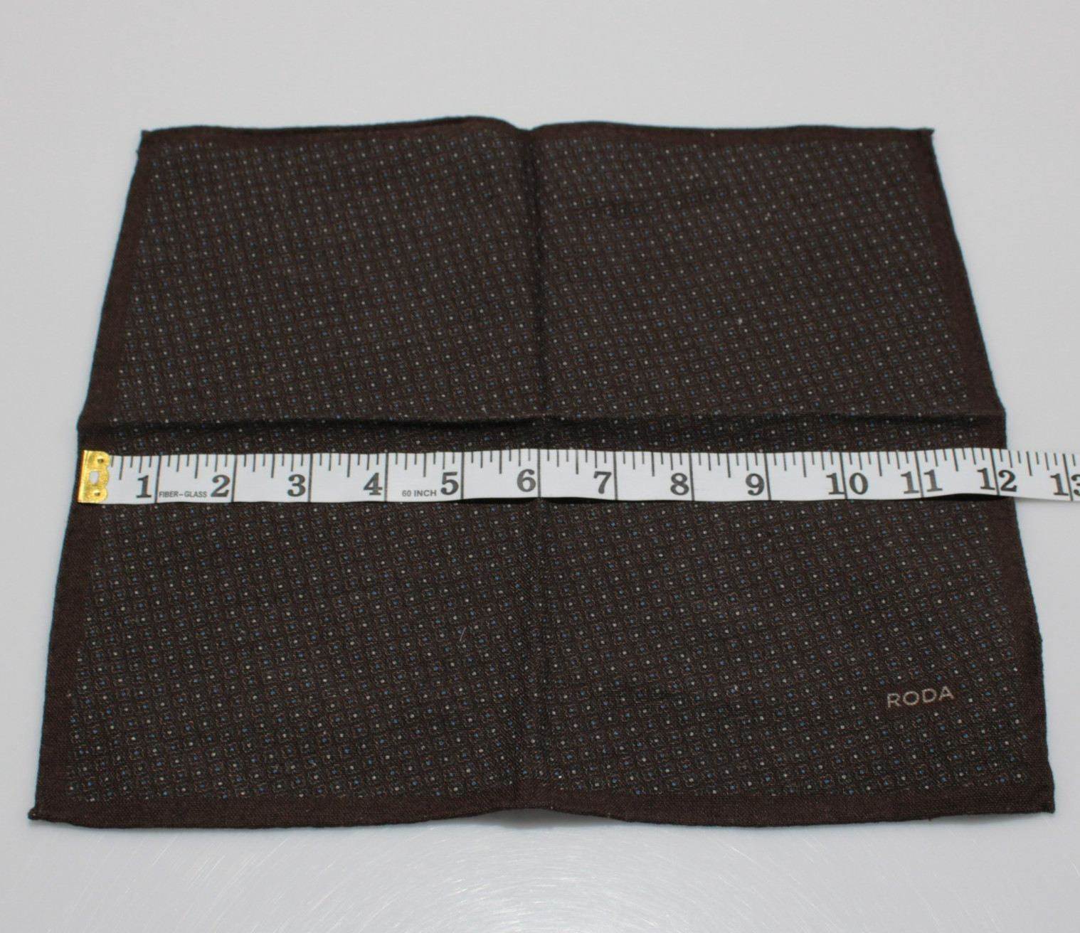 Roda NWT Wool/Silk/Polyamide Pocket Square In Brown w/ Blue White Floral