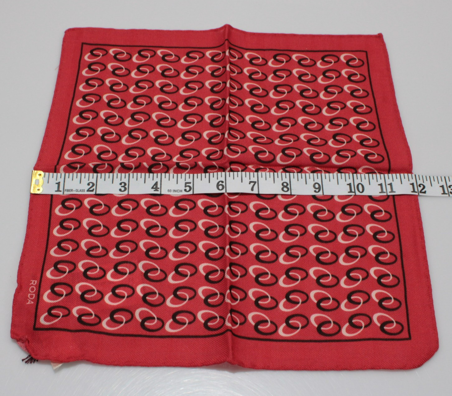Roda NWT Wool/Silk Blend Pocket Square In Red w/ Black White Rings