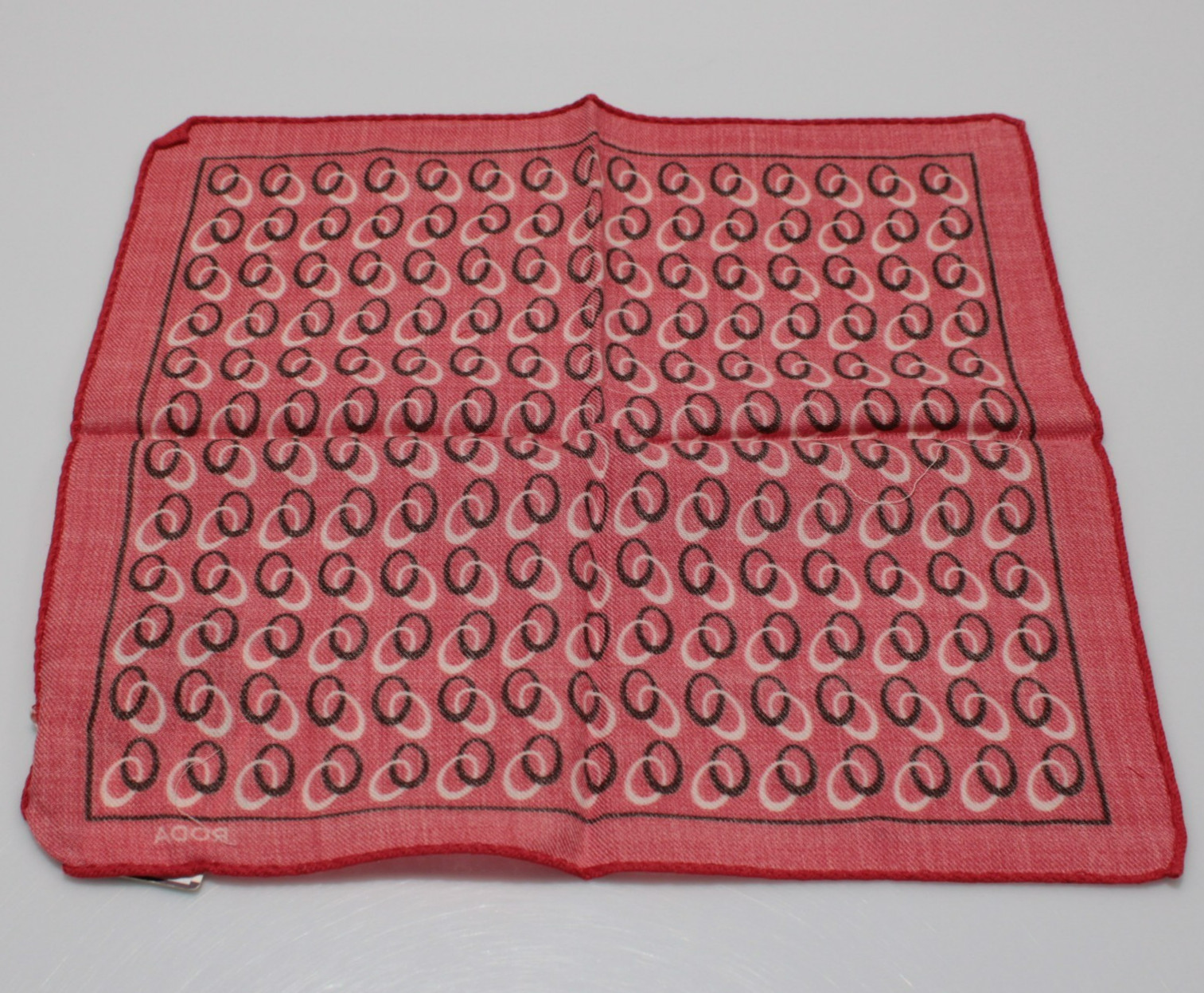 как выглядит Roda NWT Wool/Silk Blend Pocket Square In Red w/ Black White Rings фото