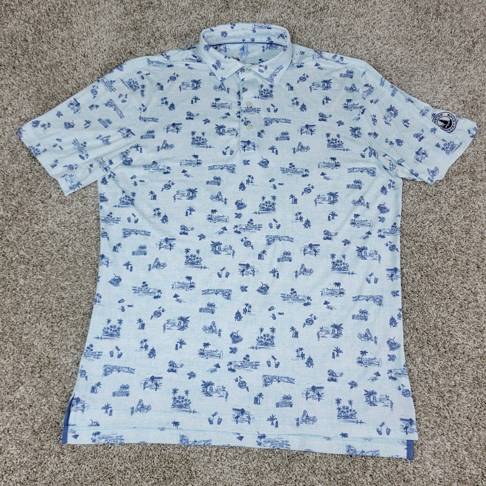 как выглядит Johnnie O Featherweight Mens Medium Blue AOP Floral Performance Stretch Polo SS фото
