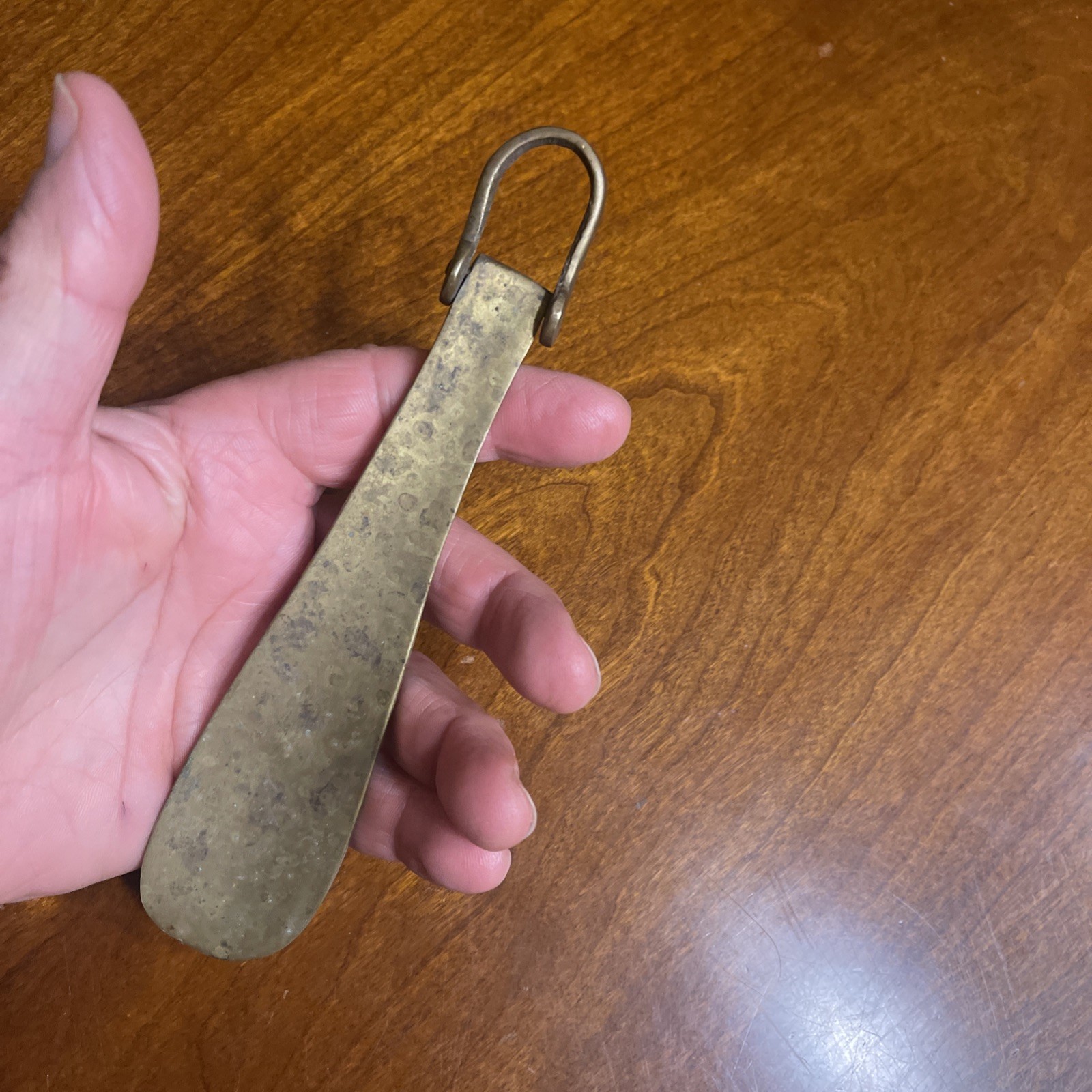 как выглядит Vintage Solid Brass Shoe Horn With Hanger фото