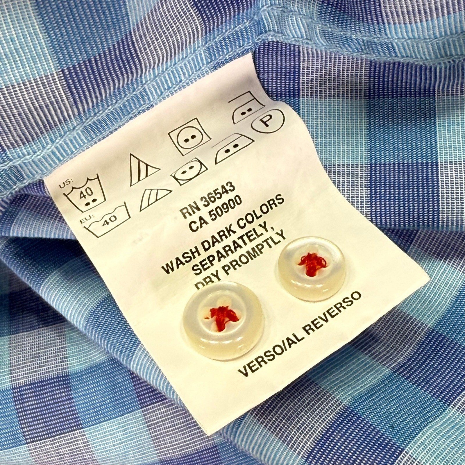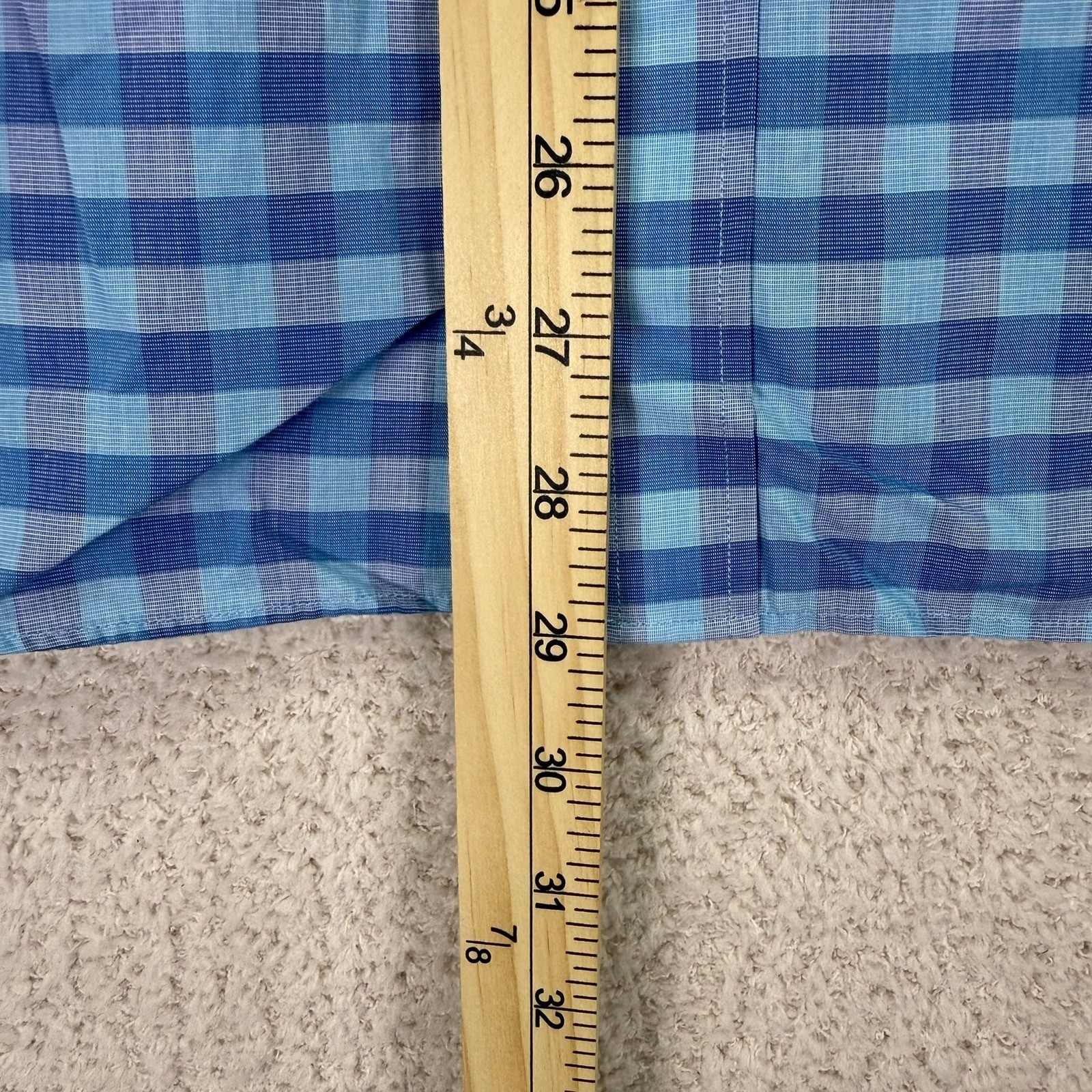 Tommy Hilfiger Mens 16 32/33 Blue Checkered Slim Fit Long Slv Button Down Shirt