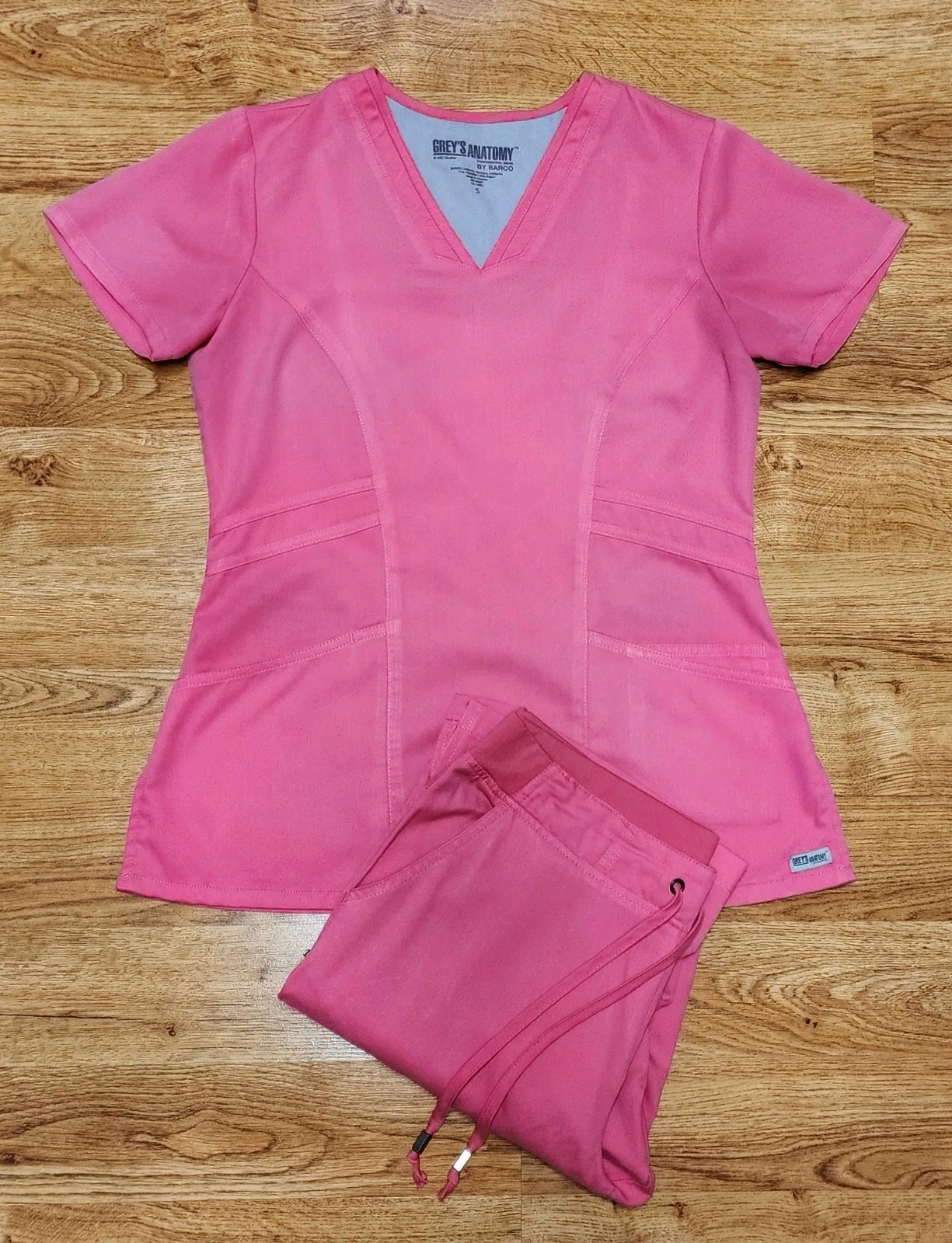 GREY'S ANATOMY WOMENS SIZE S PEACHY PINK SCRUB PANT TOP SET