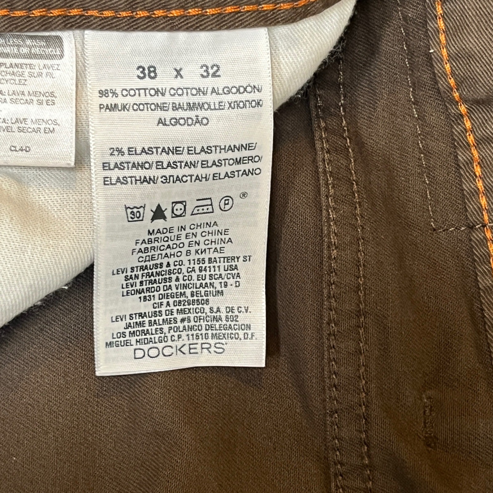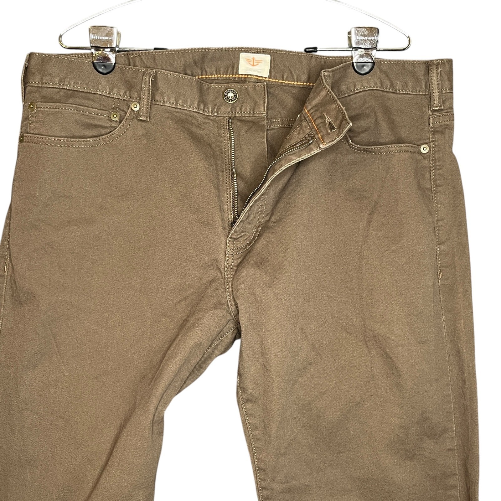 как выглядит Dockers Mens 38x32 Brown Straight Fit Stretch Cotton Twill Pants Chinos Trousers фото