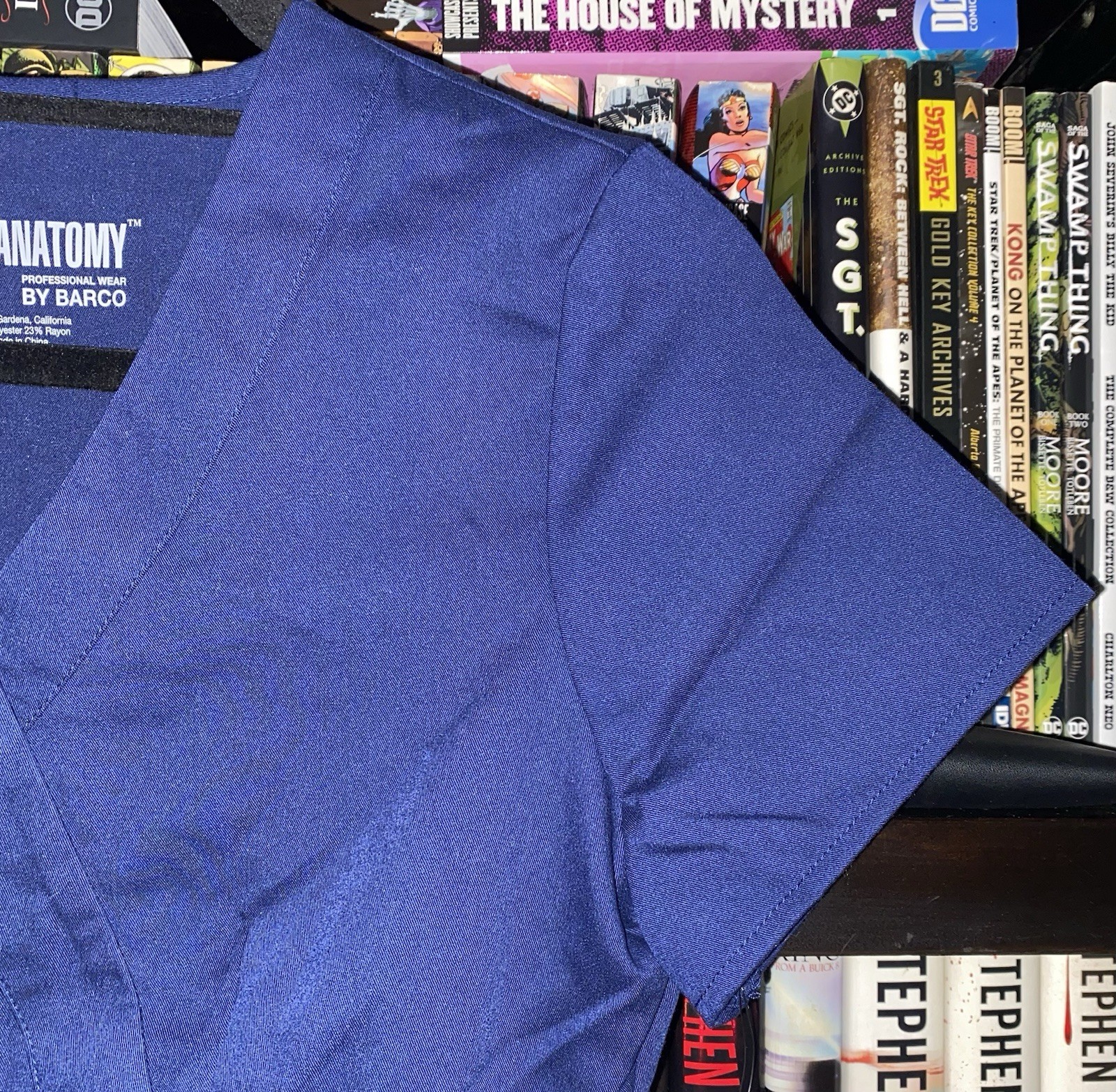 как выглядит Greys Anatomy Barco Womens Navy Blue 2 Pocket Mock Wrap Original Scrub Top XS фото
