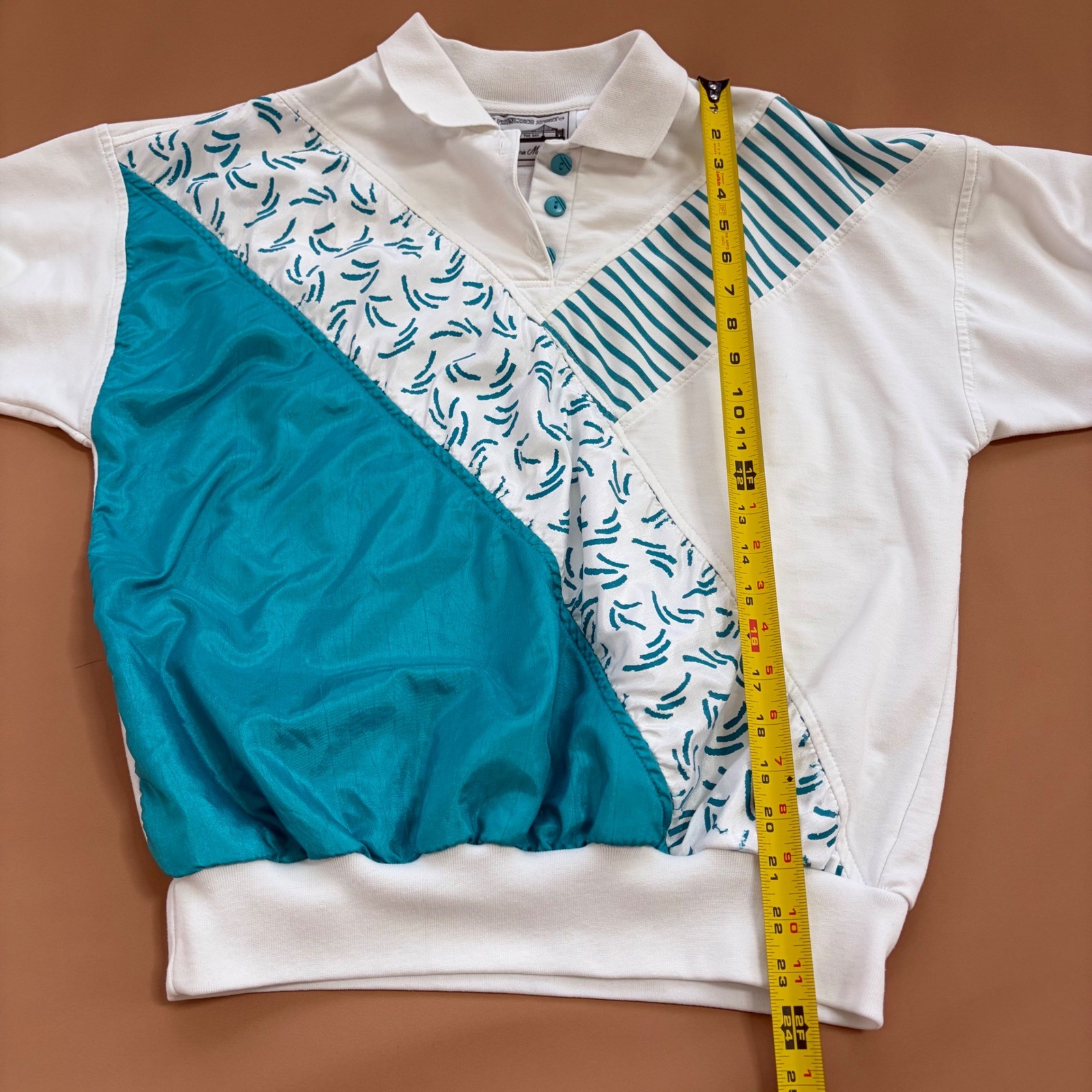 Vintage 80s San Francisco Sport Mazzella Teal Colorblock Pullover Sweatshirt M