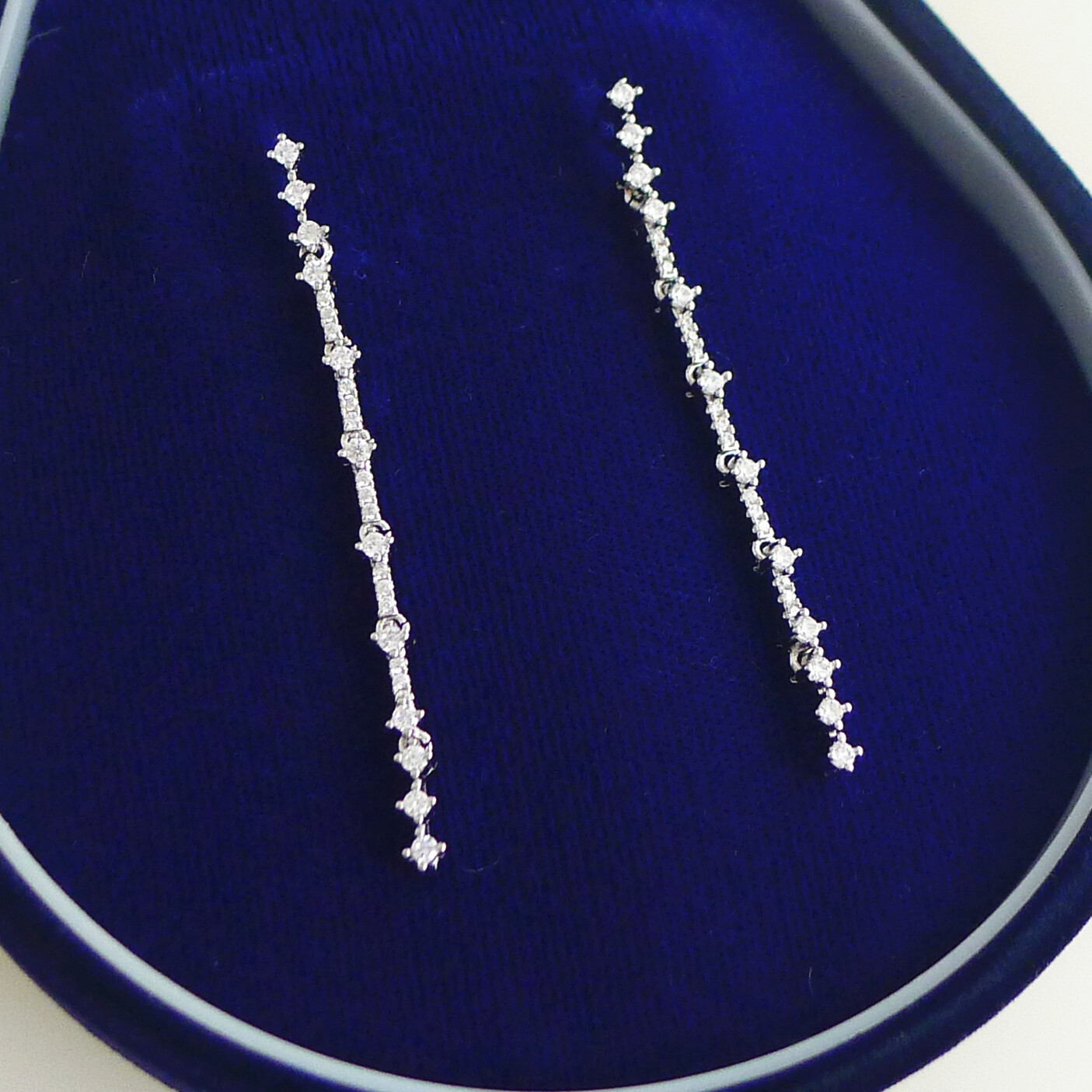 как выглядит Sterling Silver Long Paved CZ Drop Dangle Party Bridal Post Earrings фото