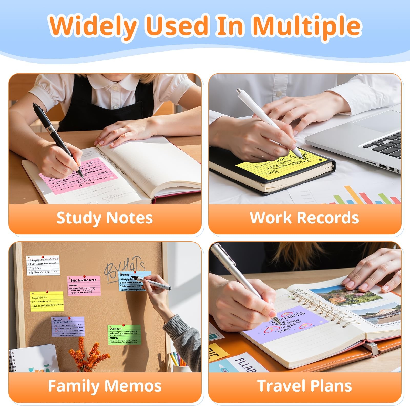 Index Cards 3x5 Inches, 300 PCS, Colored Flash Inch, Multicolor-6Pack