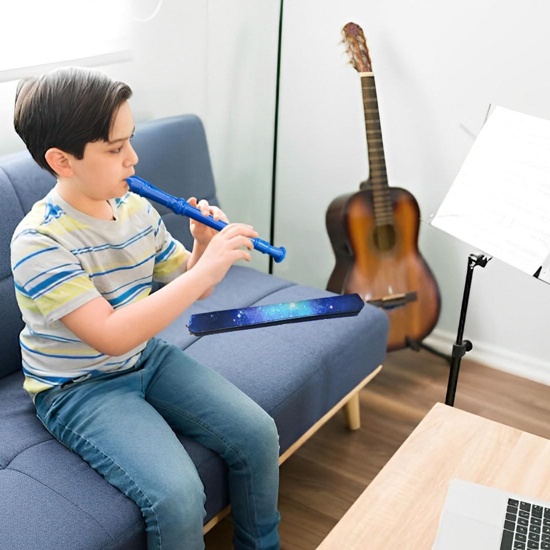 • Auteey 8 Holes Soprano Recorder with Cleaning Rod and Bag, Professional Blue