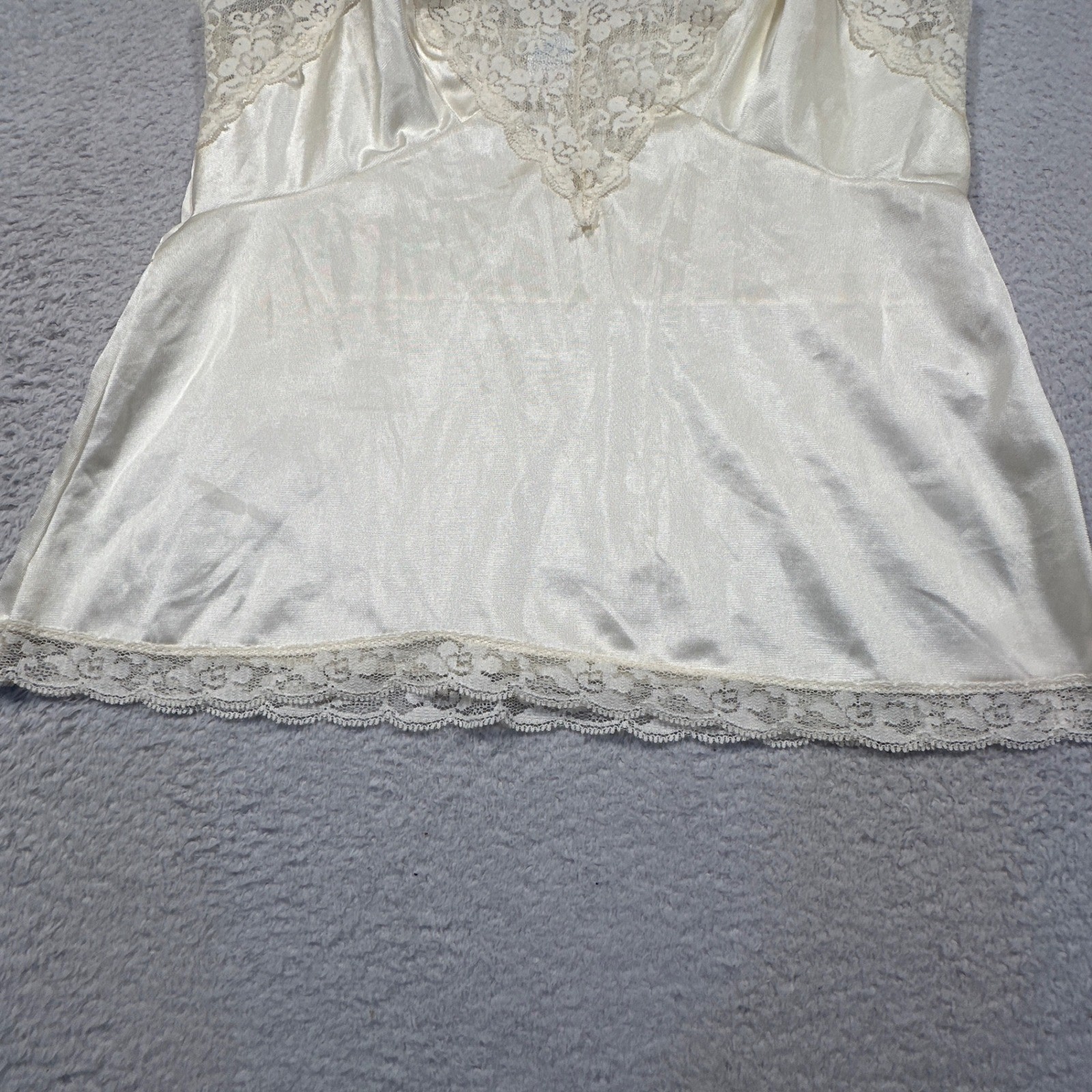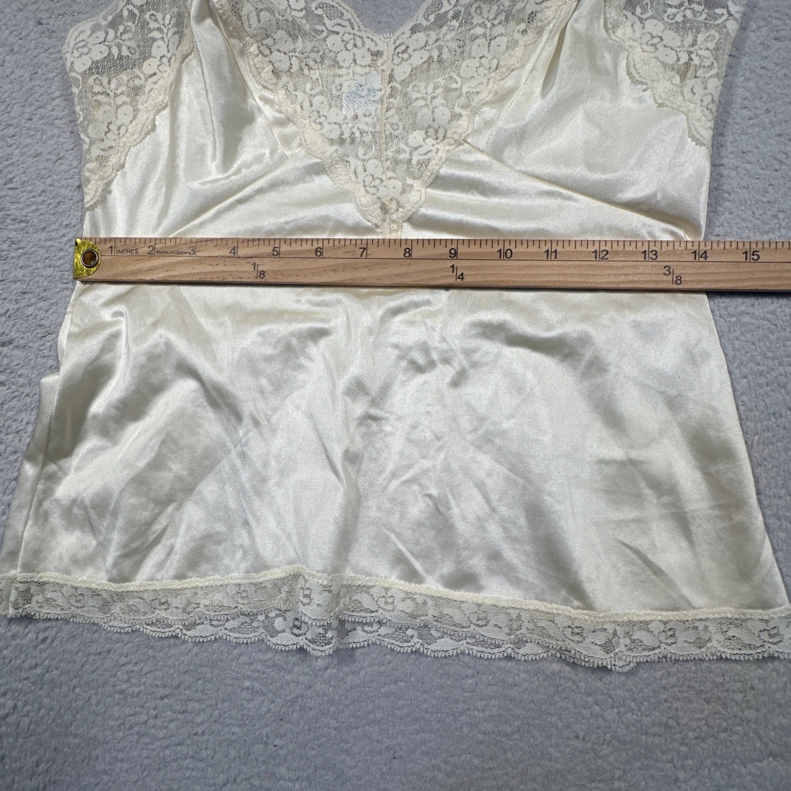 как выглядит Vintage Lace Trim Camisole Women Medium Ivory Satin Lingerie Tank Top USA Made фото