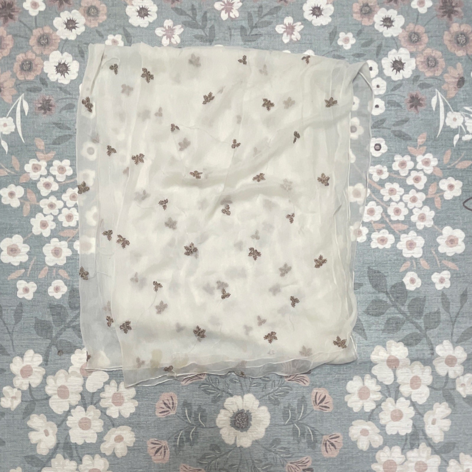 Embroidered Salwar Kameez Set Olive Green Beige Chiffon Tunic Pants Scarf Women