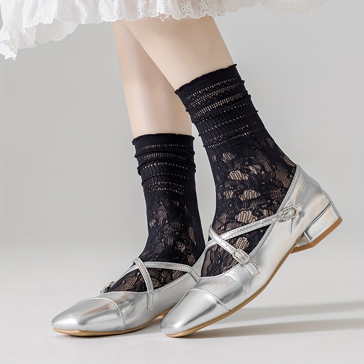3 Pairs Womens Lace Socks Sheer Hollow Out Slouch Crew Breathable Elegant