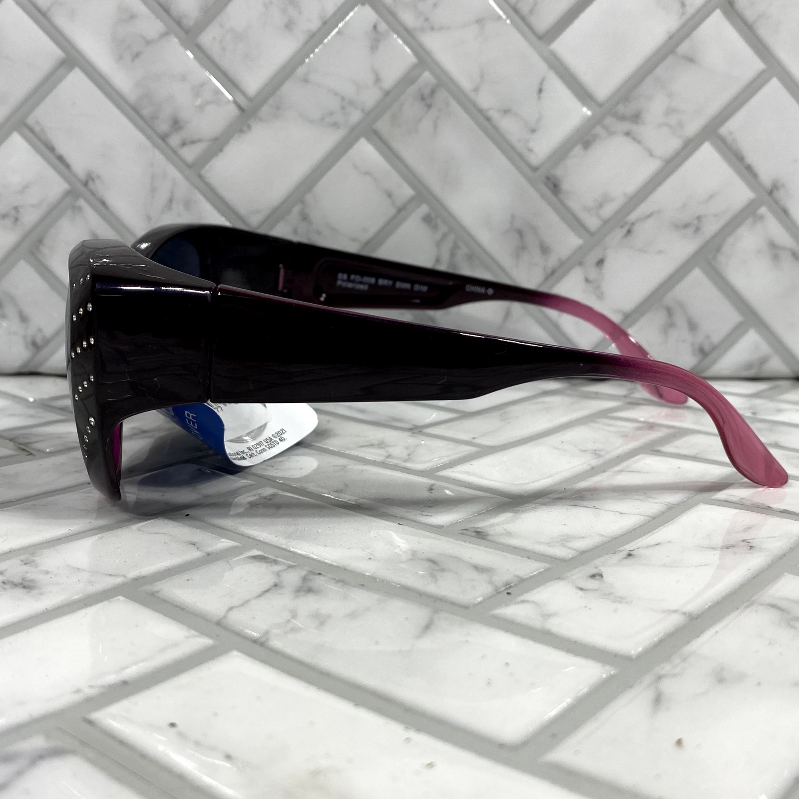NWT Foster Grant Solar Shield Fits Over Sunglasses FO-008 BRY SMK DIM Purple