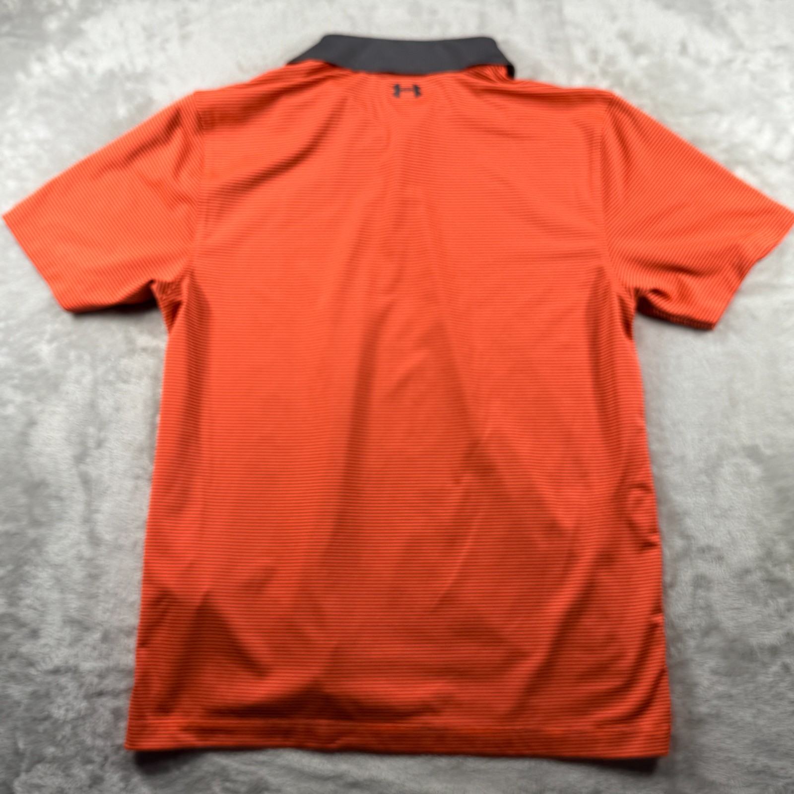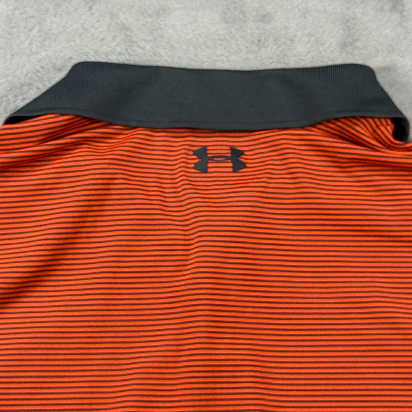 как выглядит Under Armour Mens L HeatGear Golf Polo Shirt Orange Black Striped Loose фото