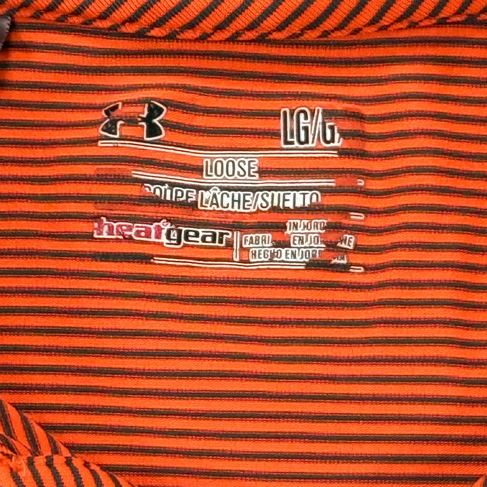 Under Armour Mens L HeatGear Golf Polo Shirt Orange Black Striped Loose