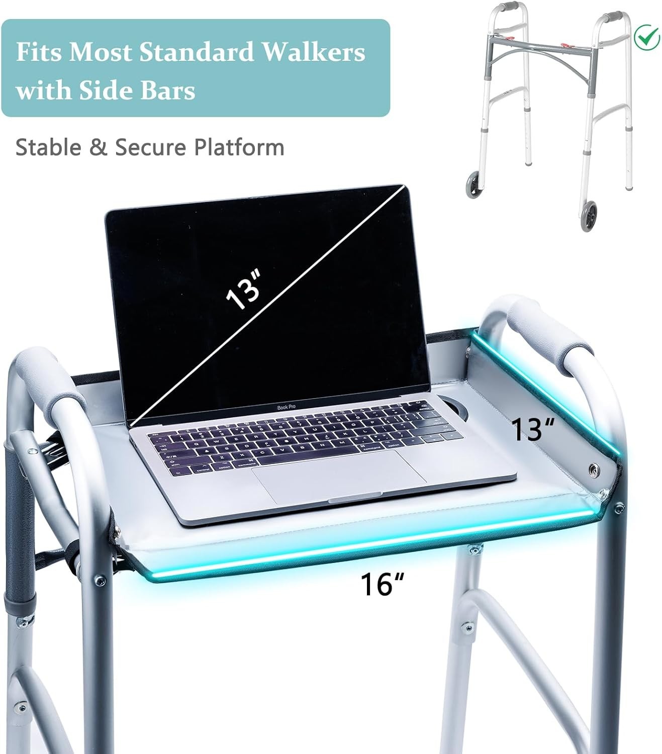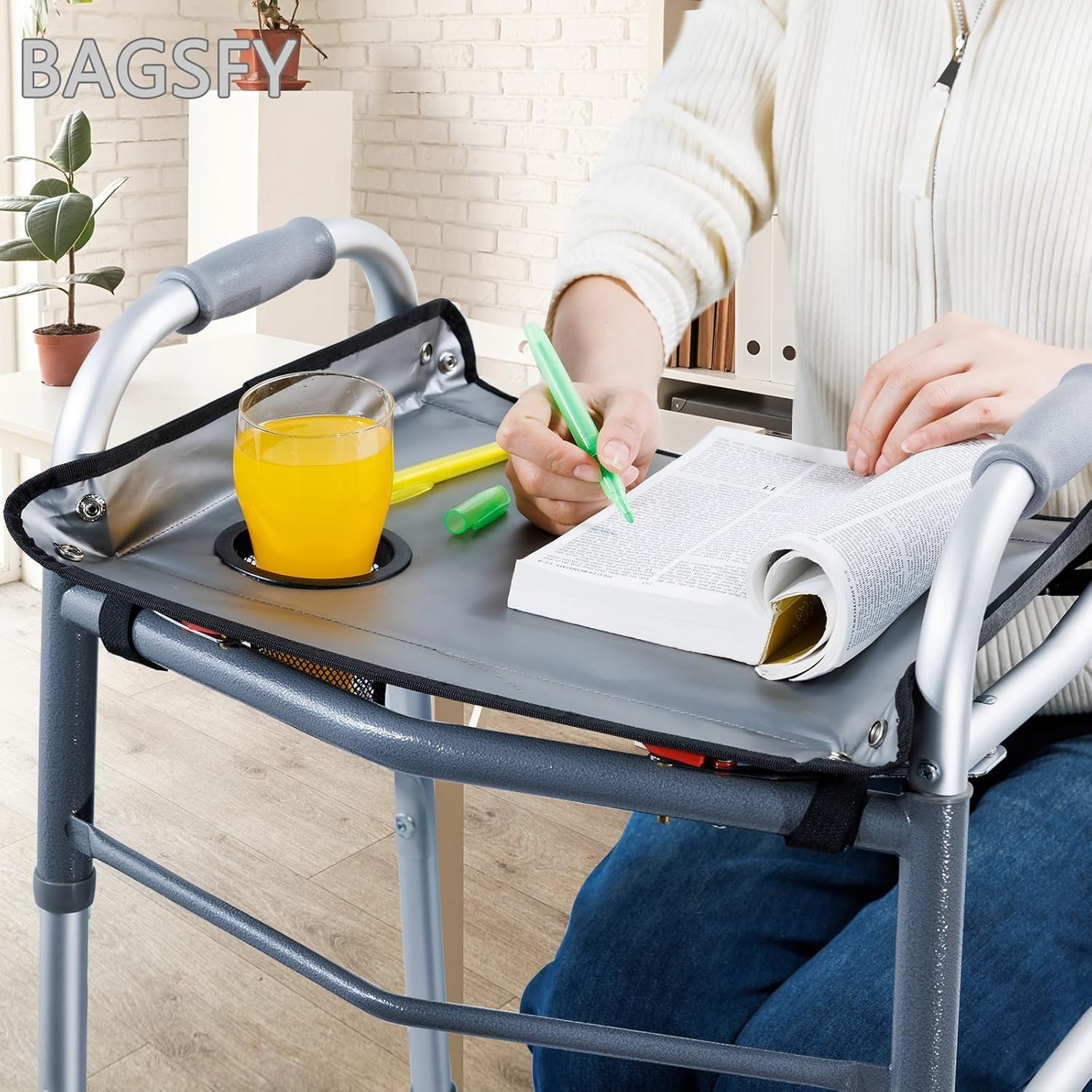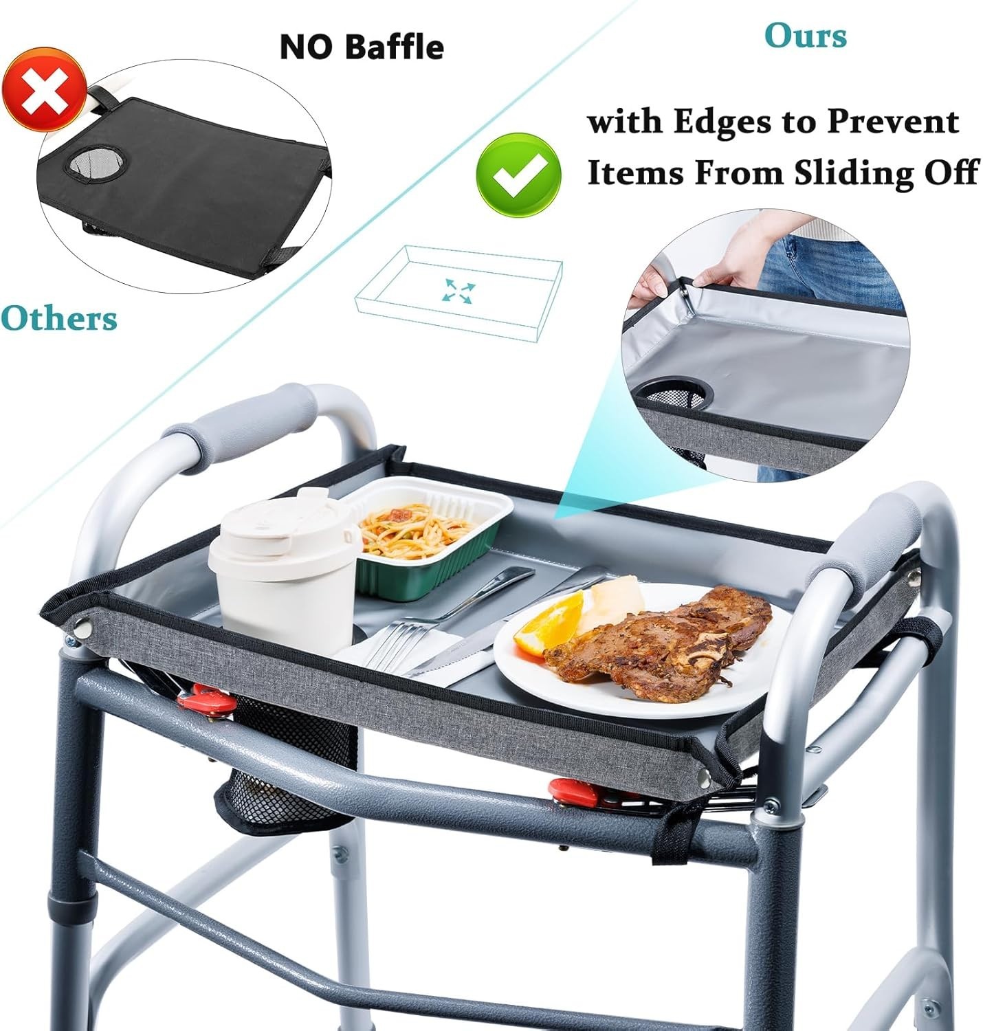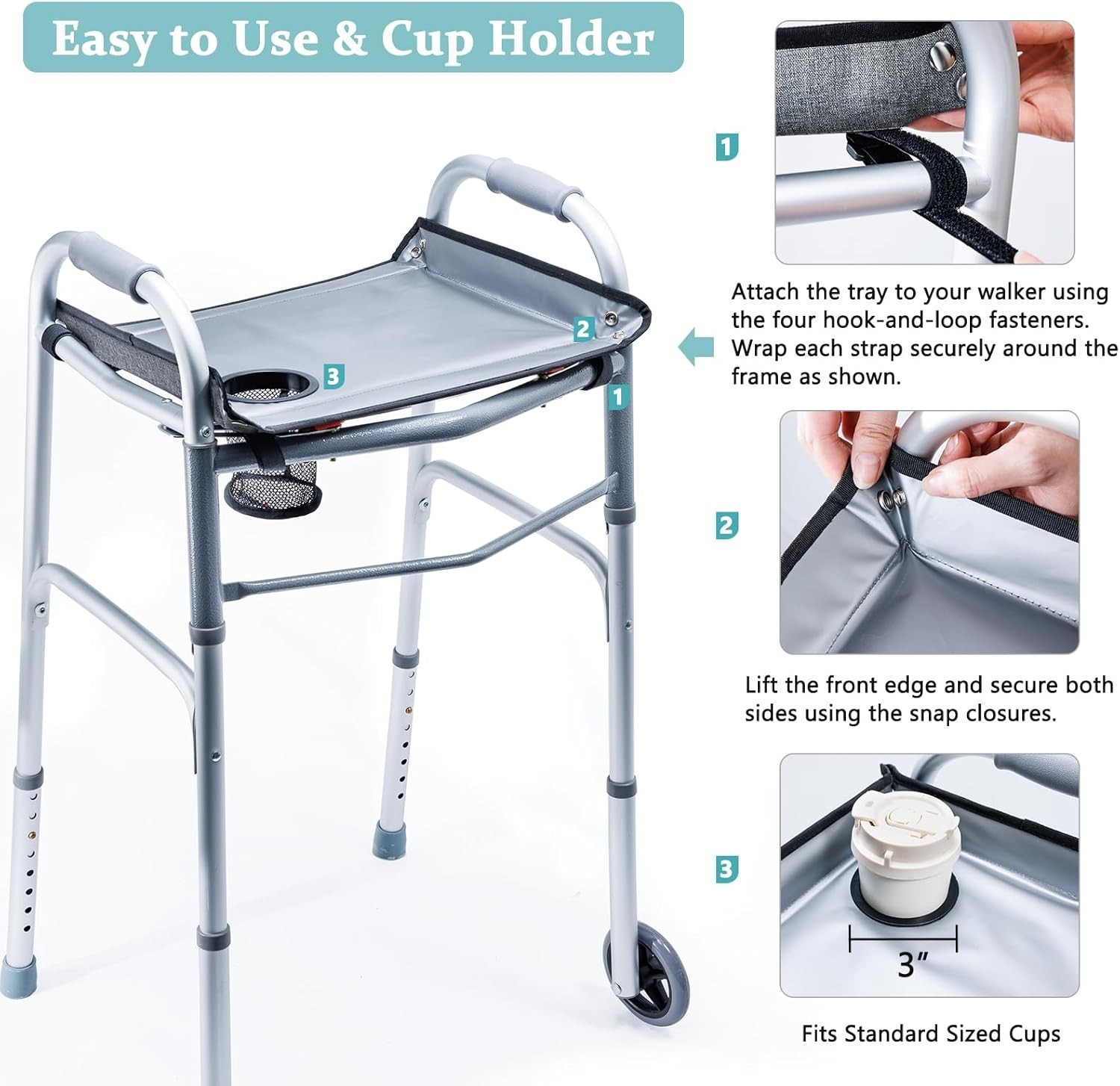Walker Tray with Cup Holder Hard Top Walker Accessory for Seniors Folding...
