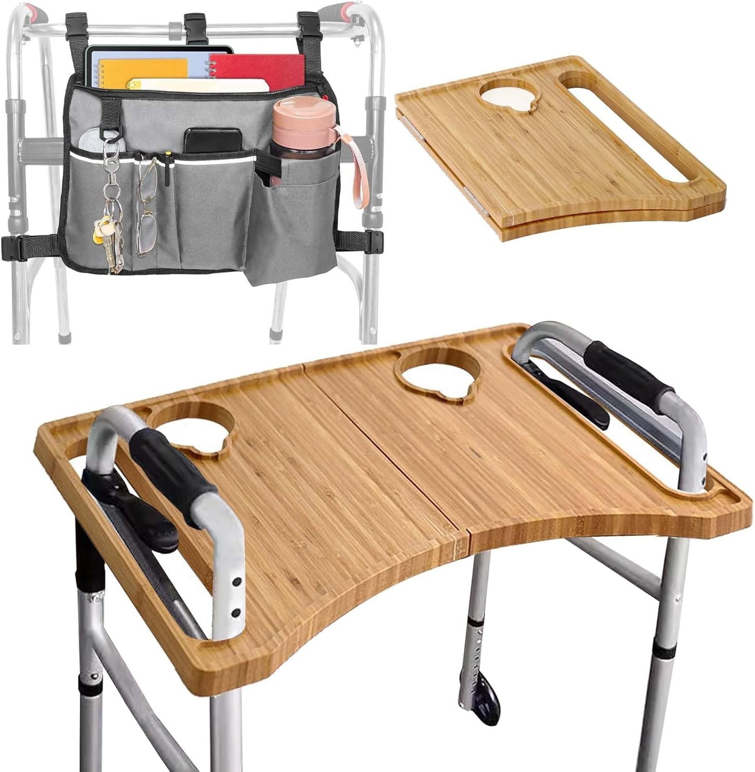 Walker Tray Storage Bag Combo with Cup Holder, Large Capacity, Water-Resist...