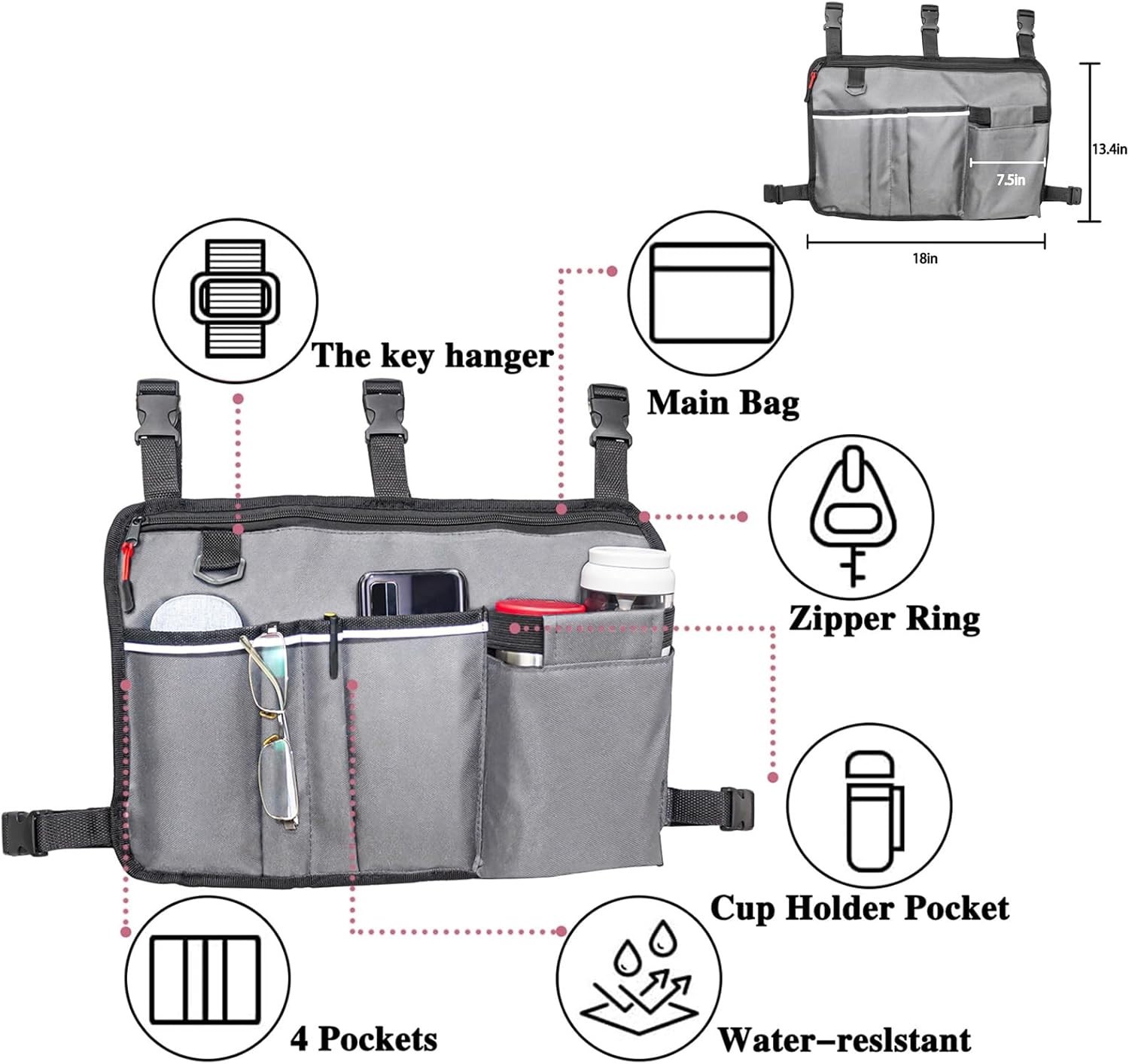 как выглядит Walker Tray Storage Bag Combo with Cup Holder, Large Capacity, Water-Resist... фото
