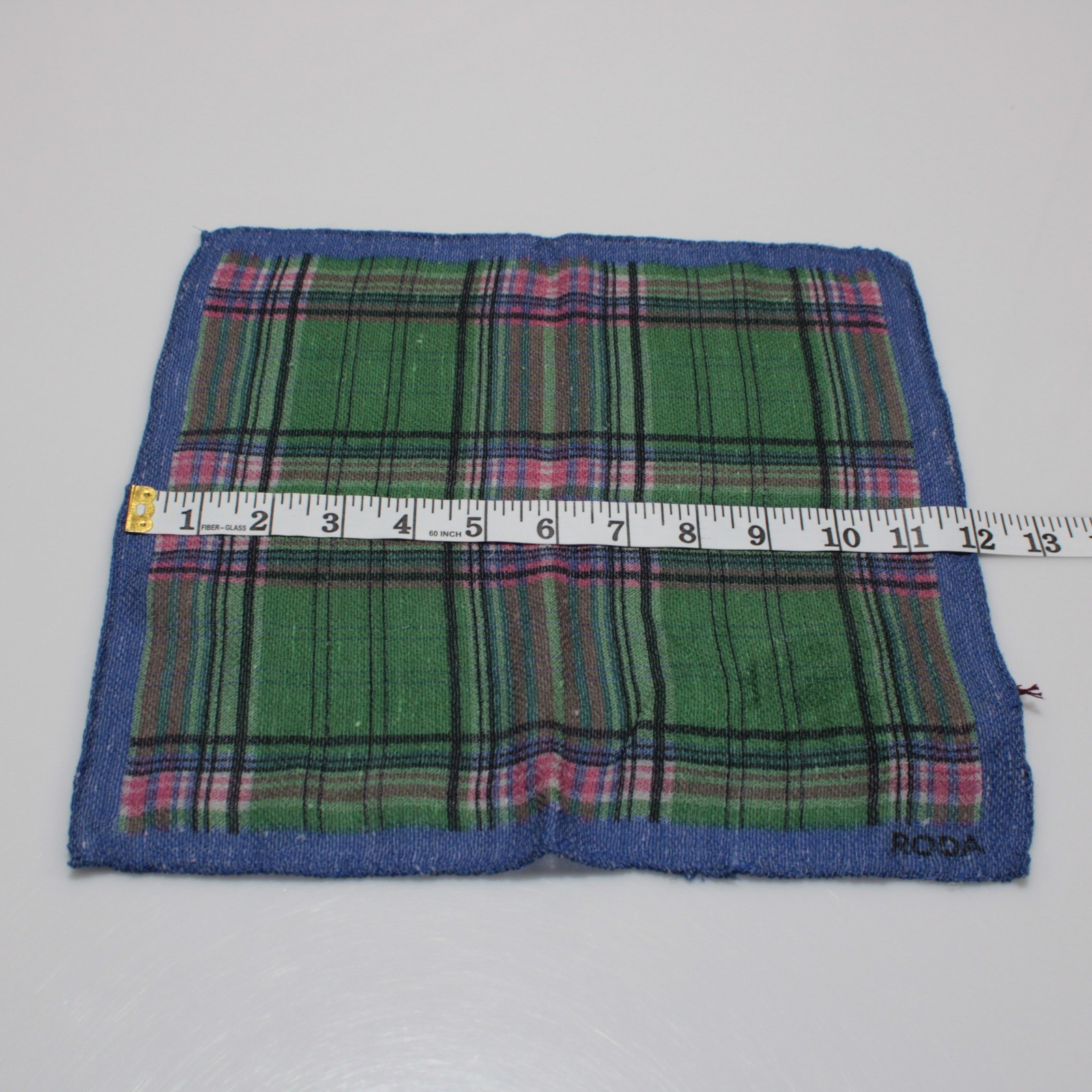 Roda NWT Wool/Cotton/Silk Pocket Square In Green w/ Blue, Pink Brown Plaid