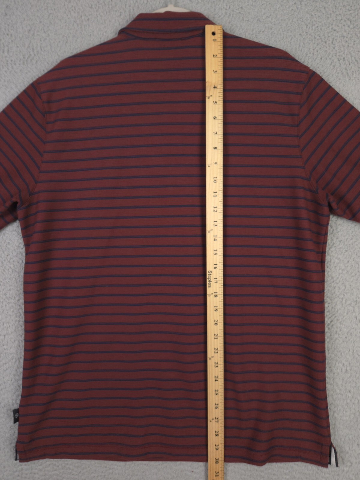как выглядит Ted Baker Textured Pocket Polo Shirt Mens Size 4/Large Burgundy w/Blue Stripes фото