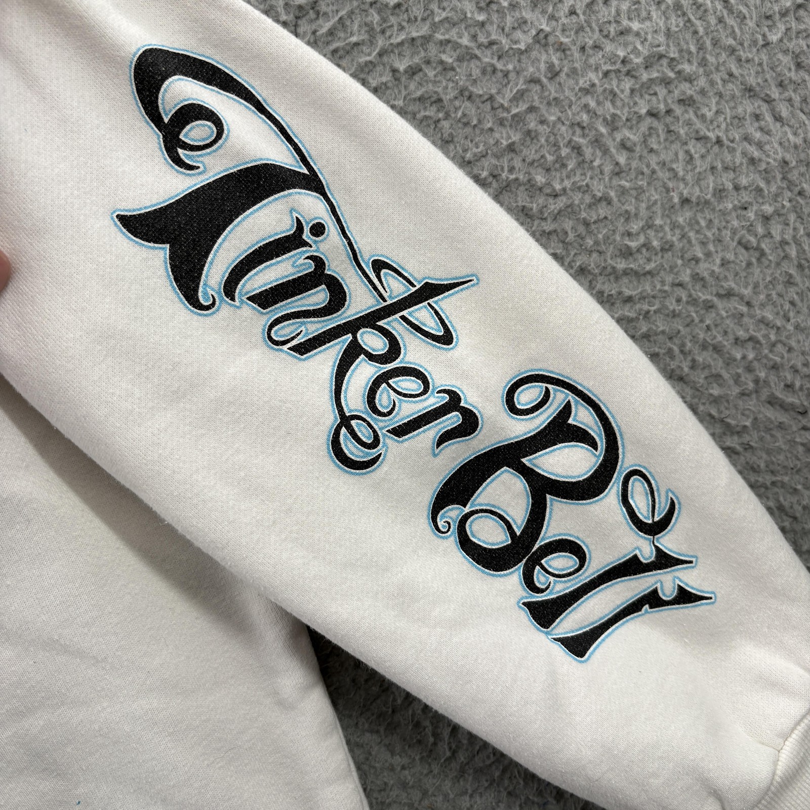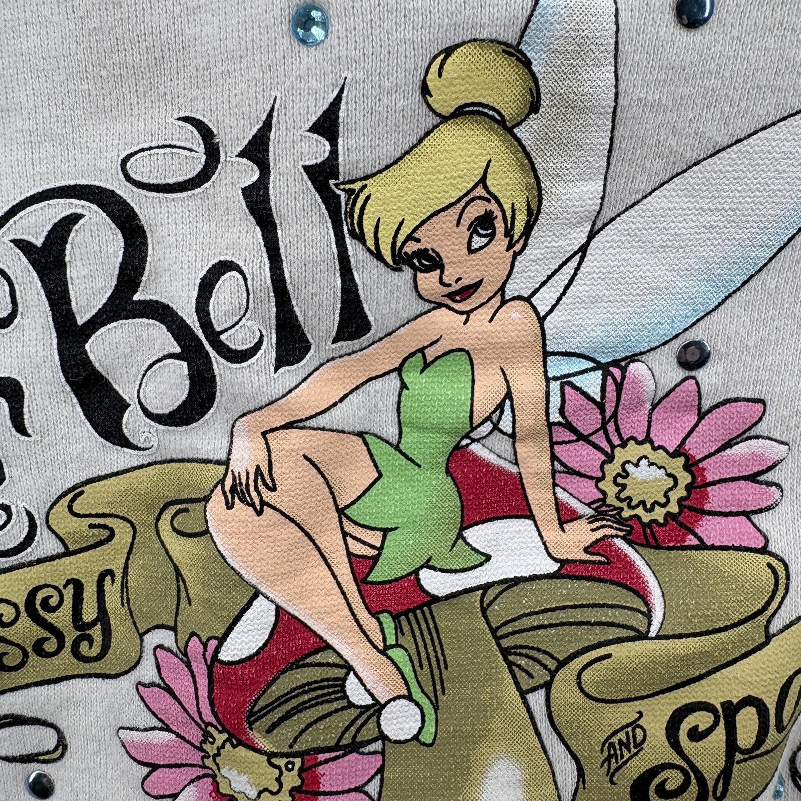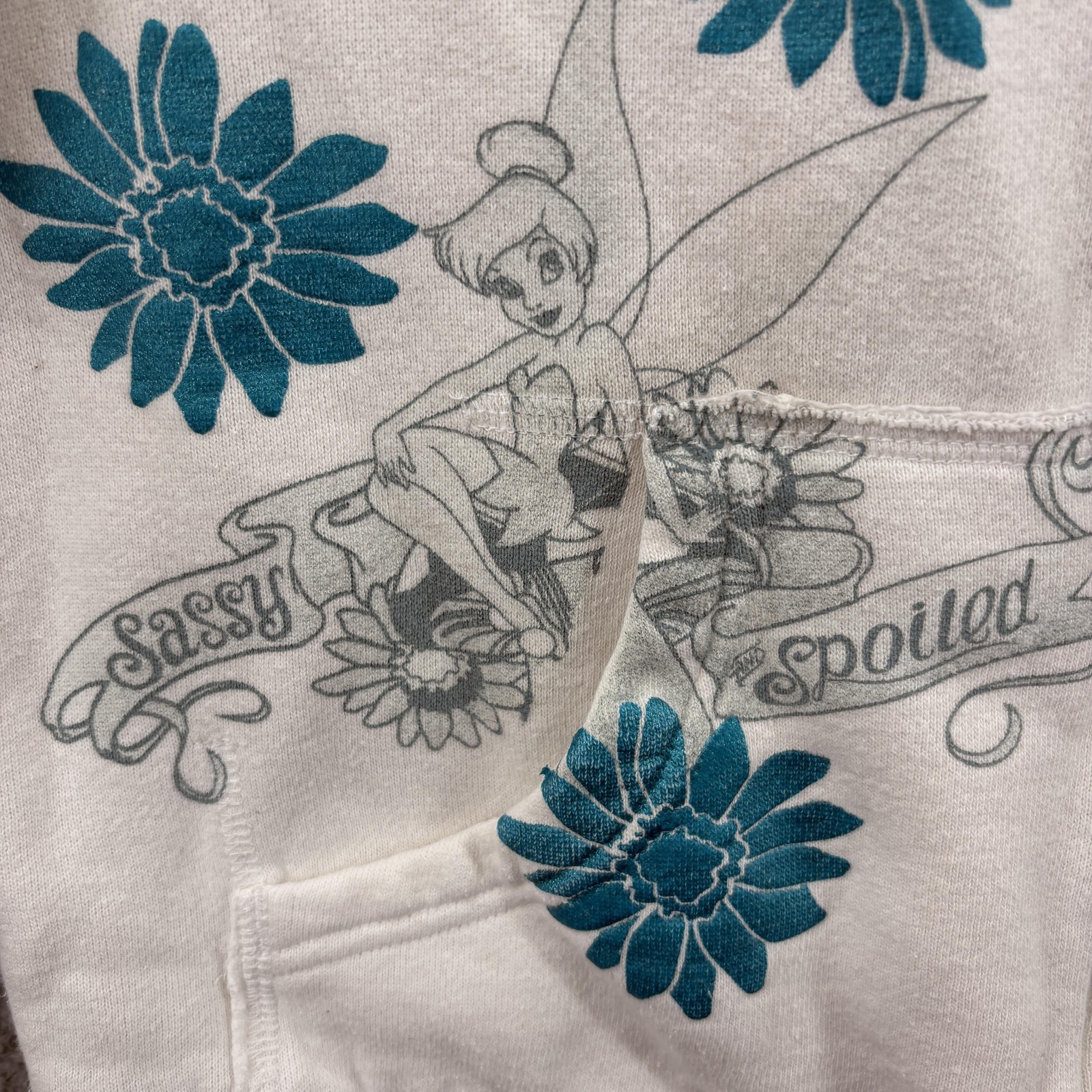 • Disney Tinker Bell Hoodie Womens Large White Zip Sweatshirt Embroidered Flower