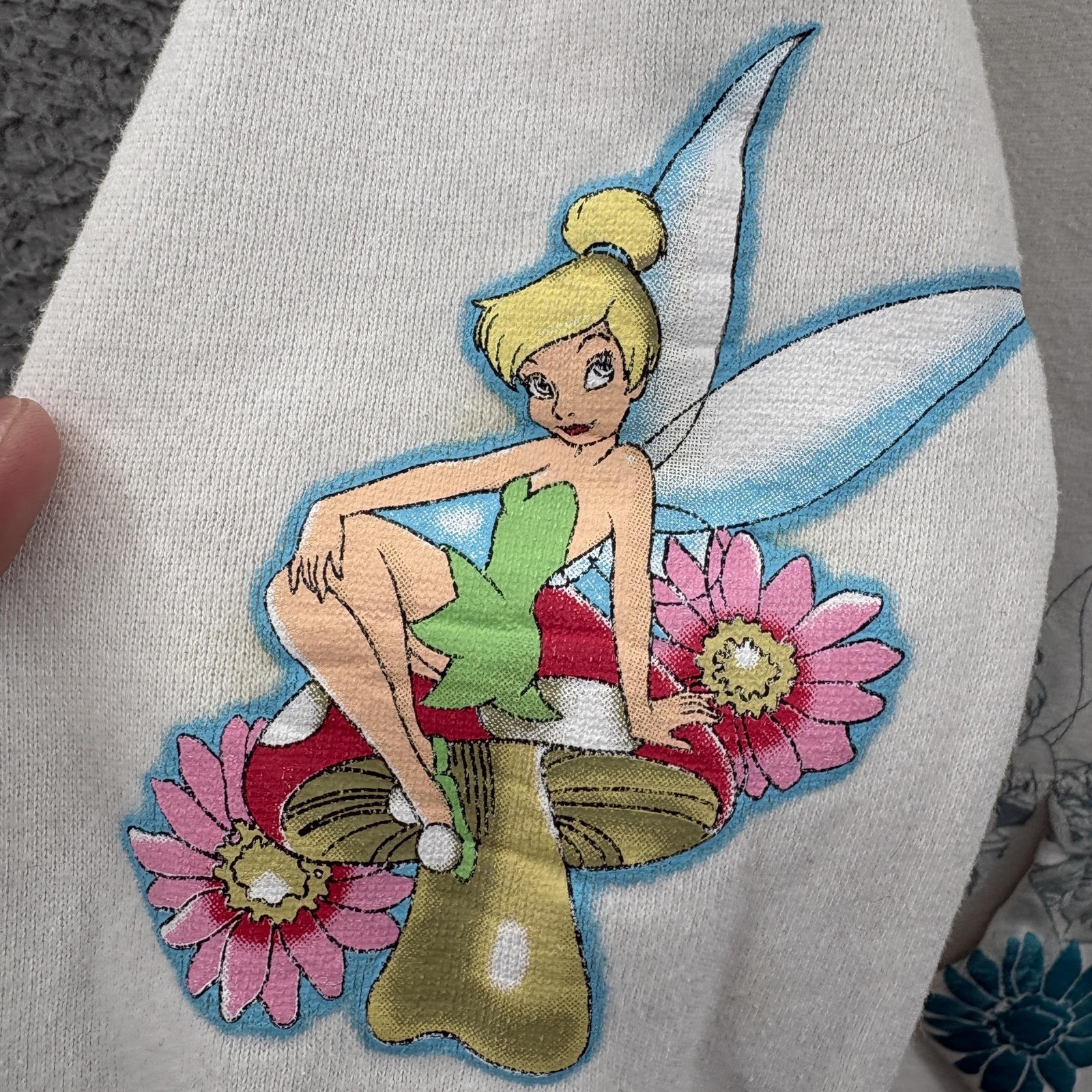 как выглядит Disney Tinker Bell Hoodie Womens Large White Zip Sweatshirt Embroidered Flower фото