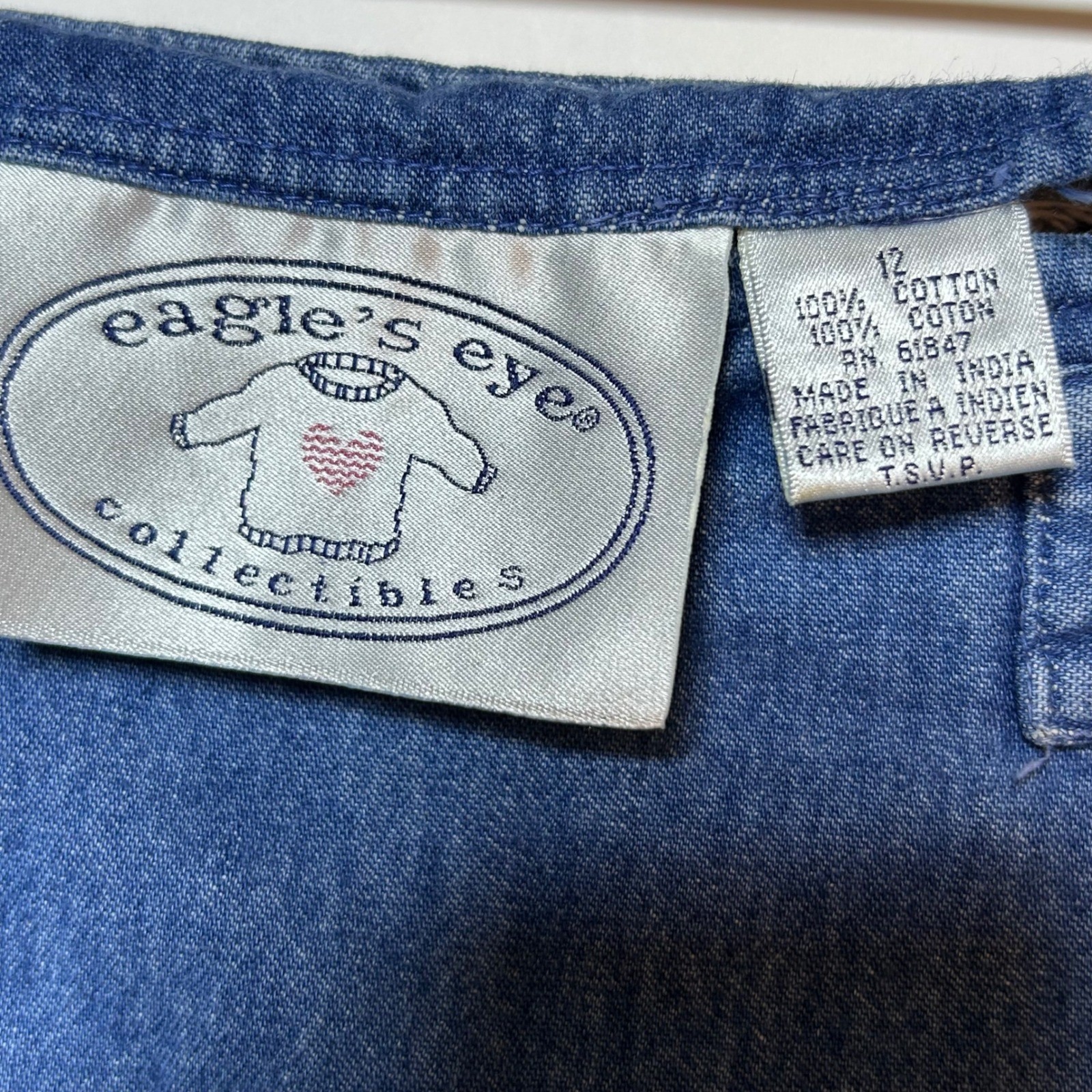 как выглядит VTG Eagles Eye Wrap Denim Skirt 12 Blue Embroidered Blanket Stitch Cottage Boho фото