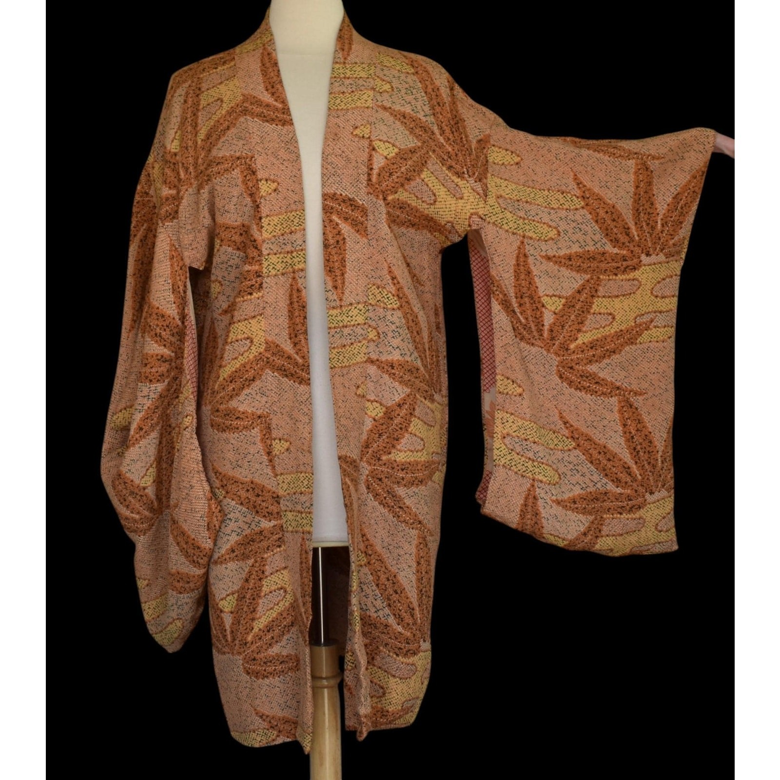 как выглядит Vintage 30s Silk Short Kimono Robe, Japanese Haori, Japan Botanical Print, M L фото