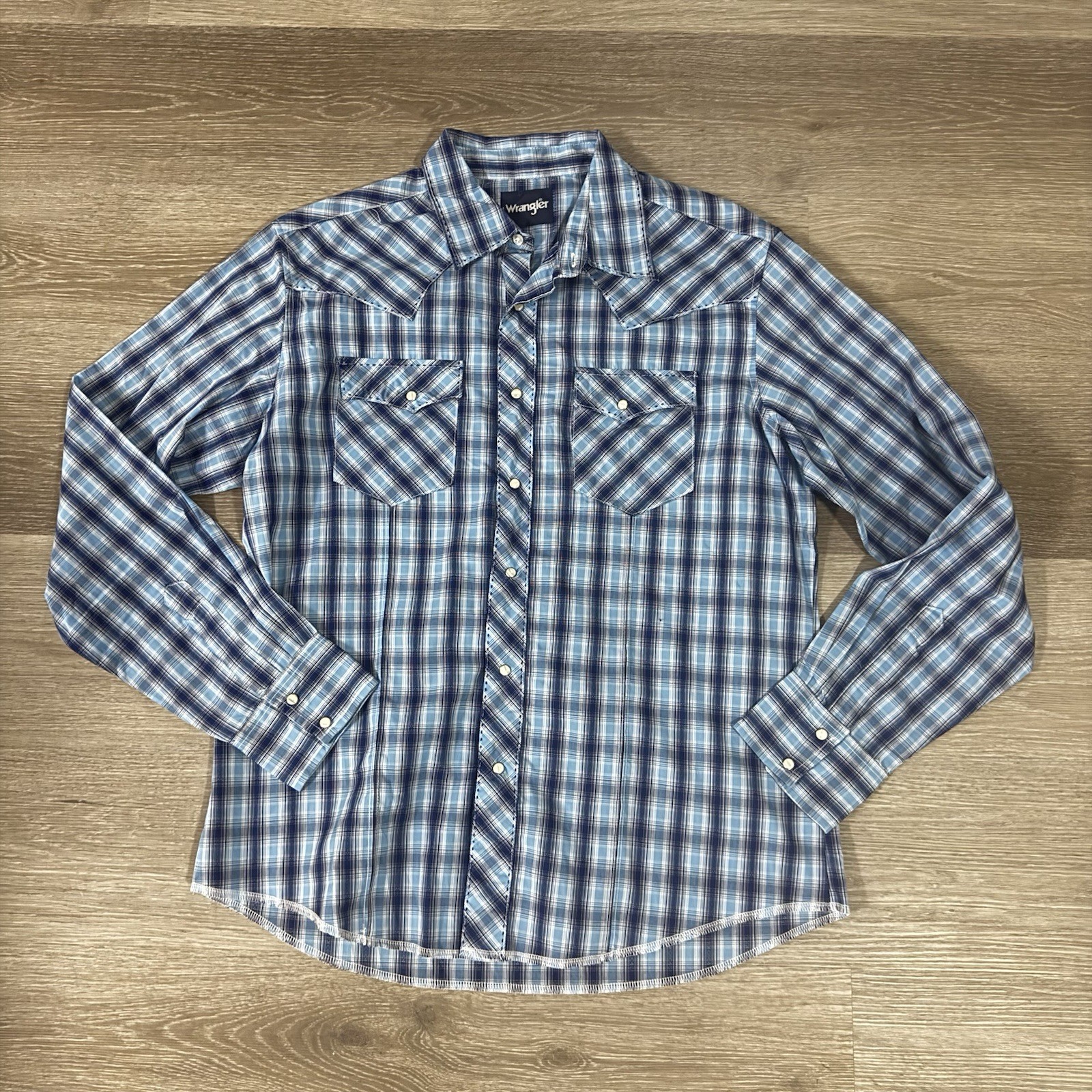 Vintage Wrangler Blue Plaid Long Sleeve Pearl Snap Western Shirt Men's L