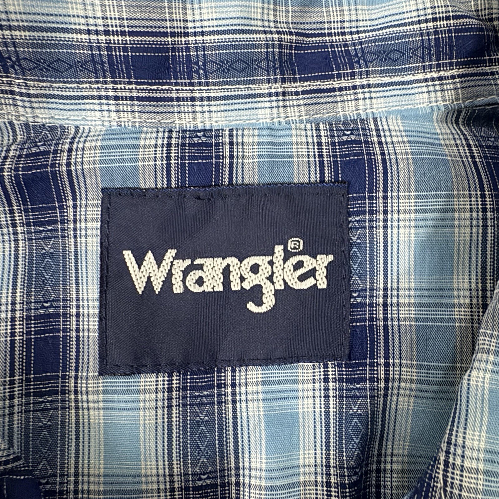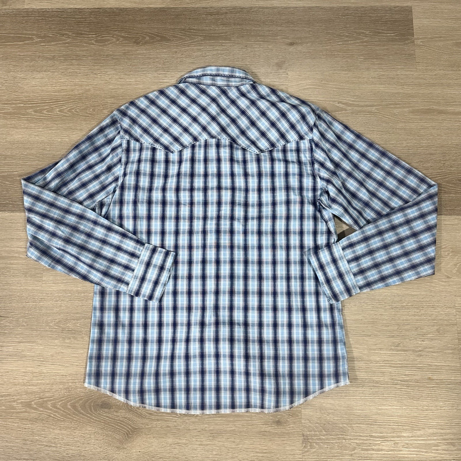как выглядит Vintage Wrangler Blue Plaid Long Sleeve Pearl Snap Western Shirt Mens L фото