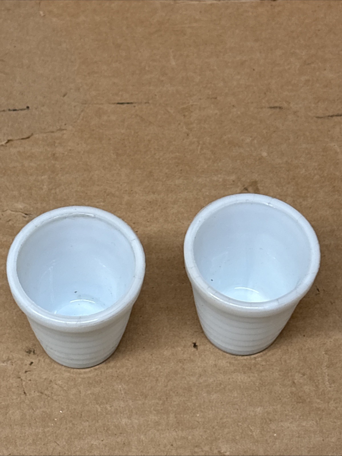 6 Pcs White Akro Agate Tumbler Cups Plates Child's Play Miniature Toy Tea Dishes