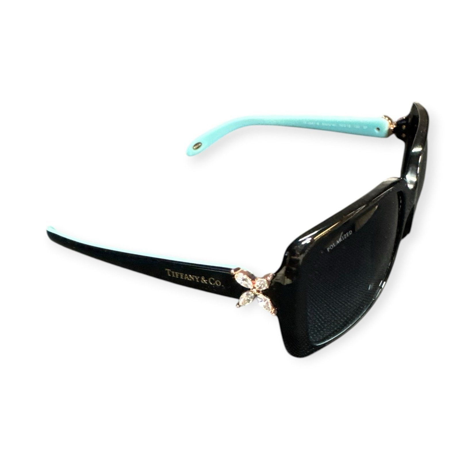 как выглядит Tiffany Co TF4047-B Black Polarized Sunglasses Flower Crystal Accent Rare VTG фото