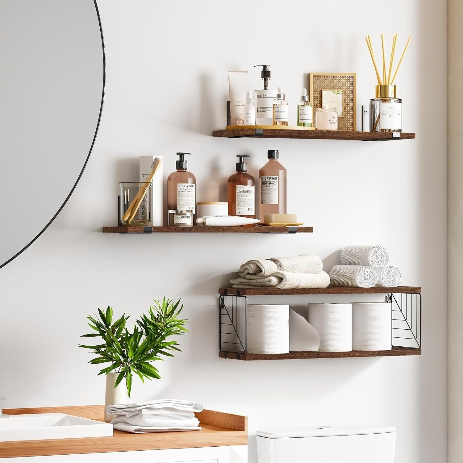 как выглядит Bathroom Floating Shelves Over Toilet, 15.8in Farmhouse Rustic Wood Shelves, ... фото