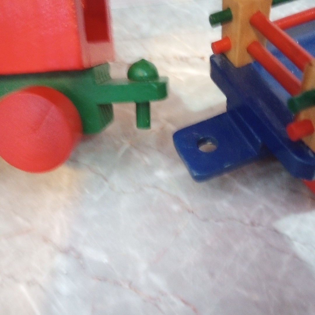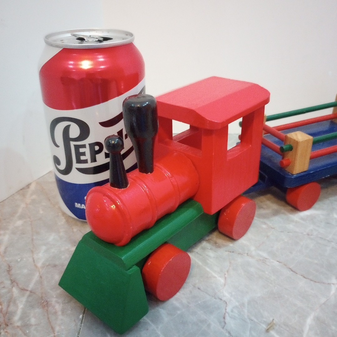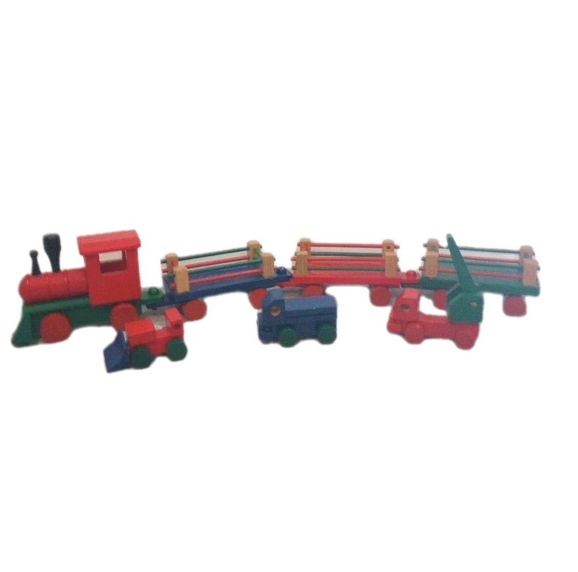 Vintage Wood Toy Train With Three Carry-on Wood Vehicles EUC