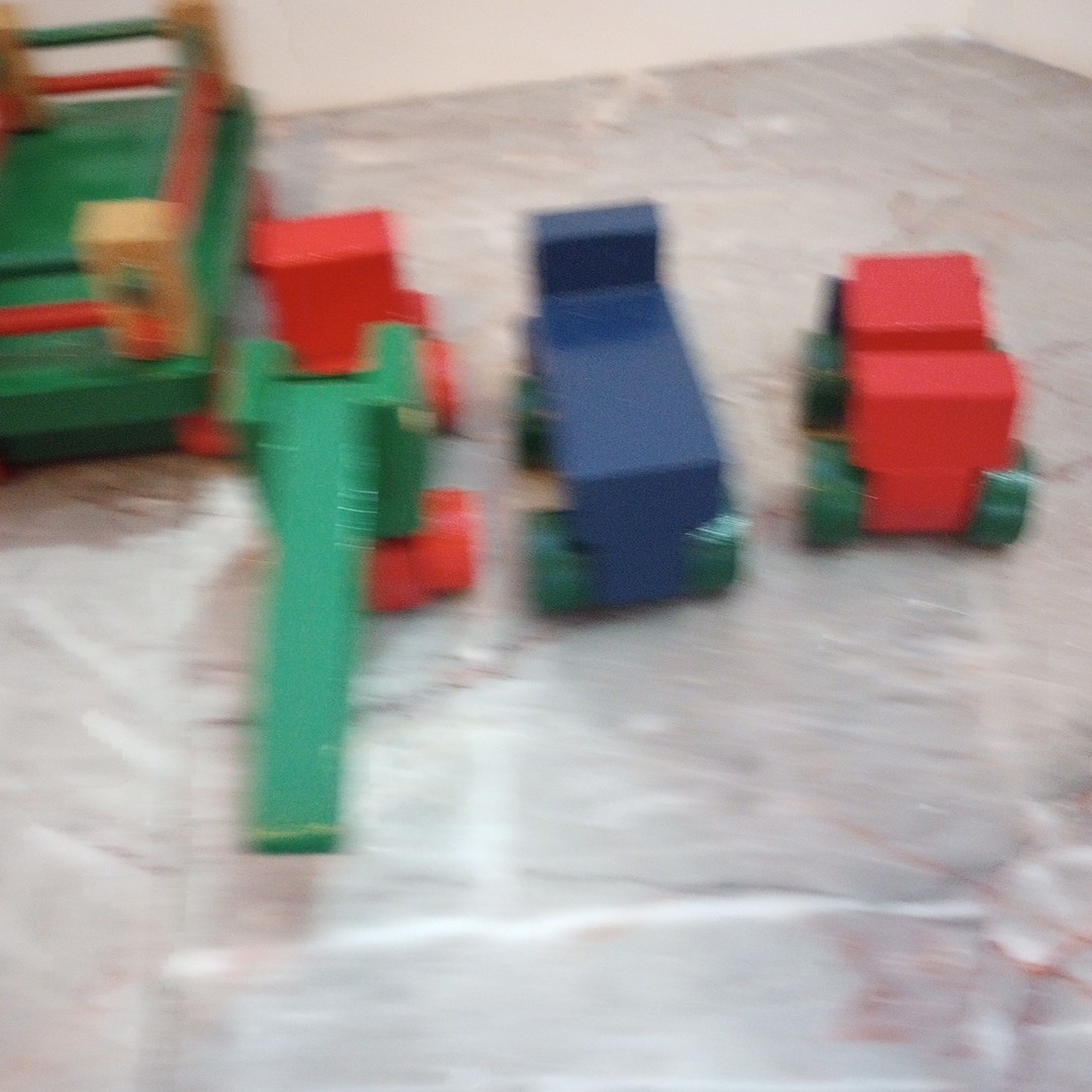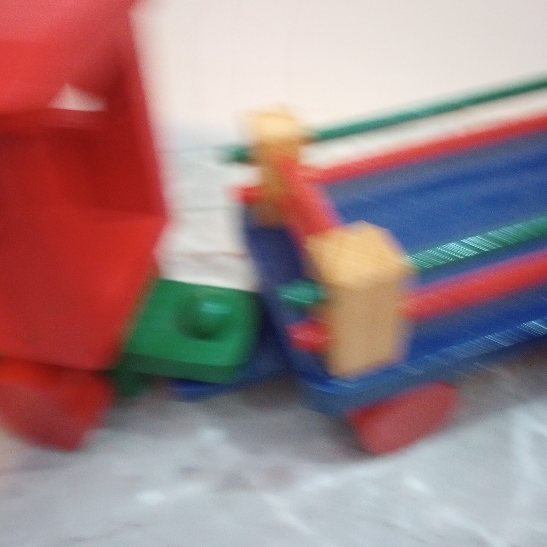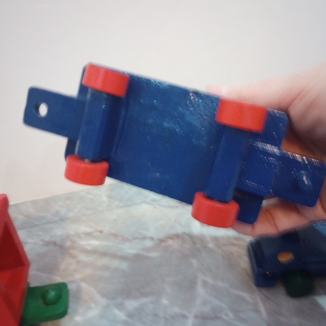 Vintage Wood Toy Train With Three Carry-on Wood Vehicles EUC