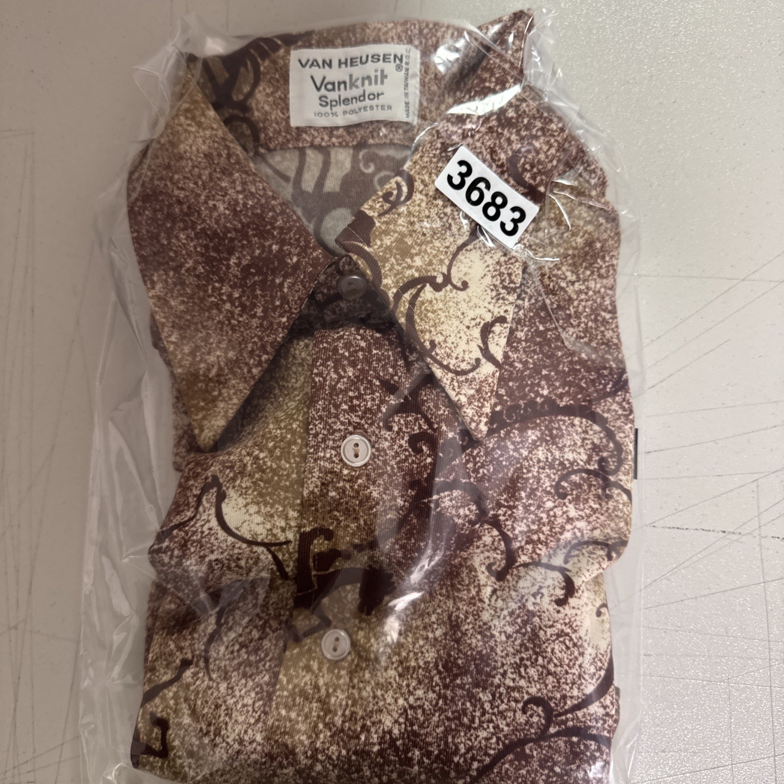 как выглядит Vintage 70s Van Heusen Van Knit Splendor Disco Shirt L Polyester Stretch Pegasus фото