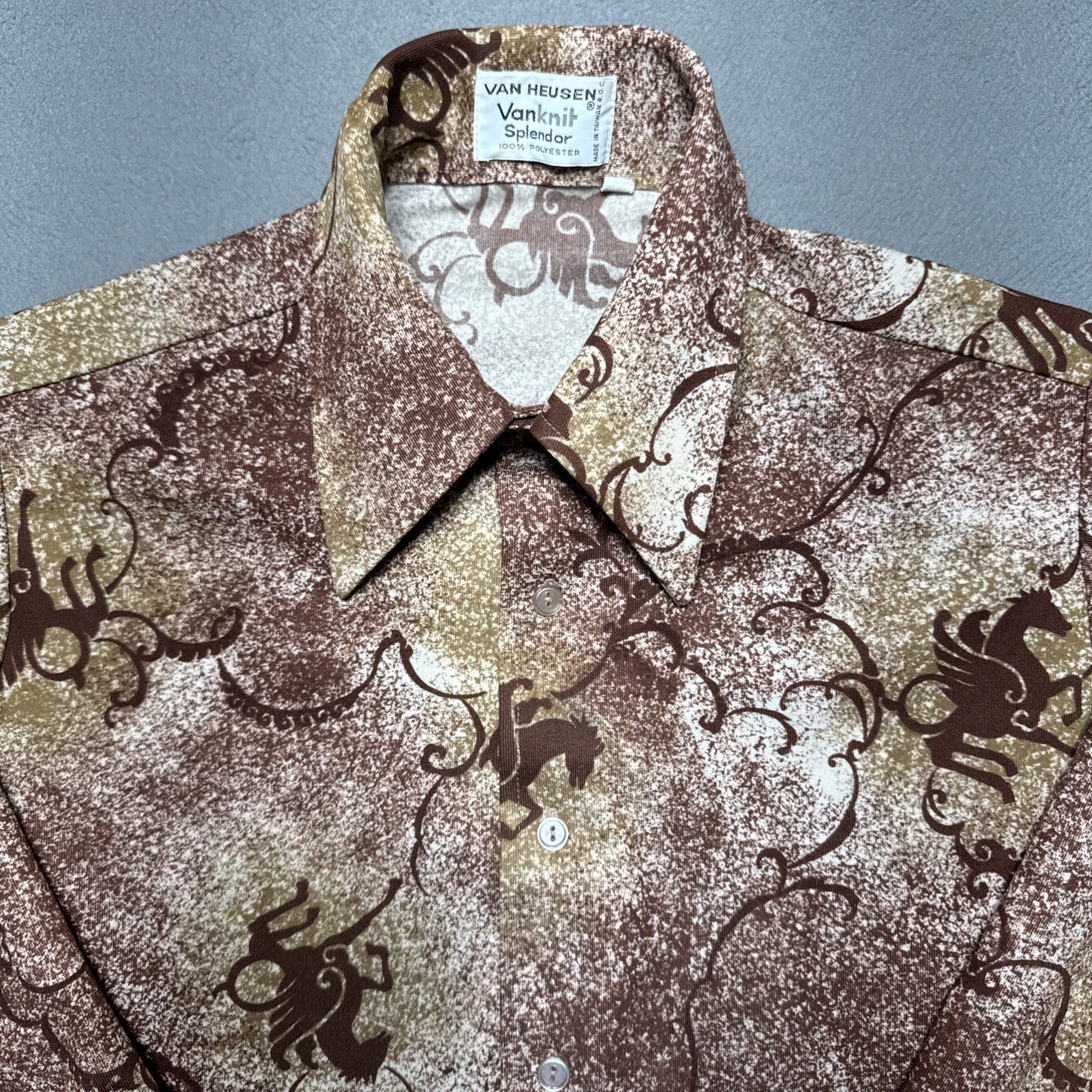 Vintage 70s Van Heusen Van Knit Splendor Disco Shirt L Polyester Stretch Pegasus