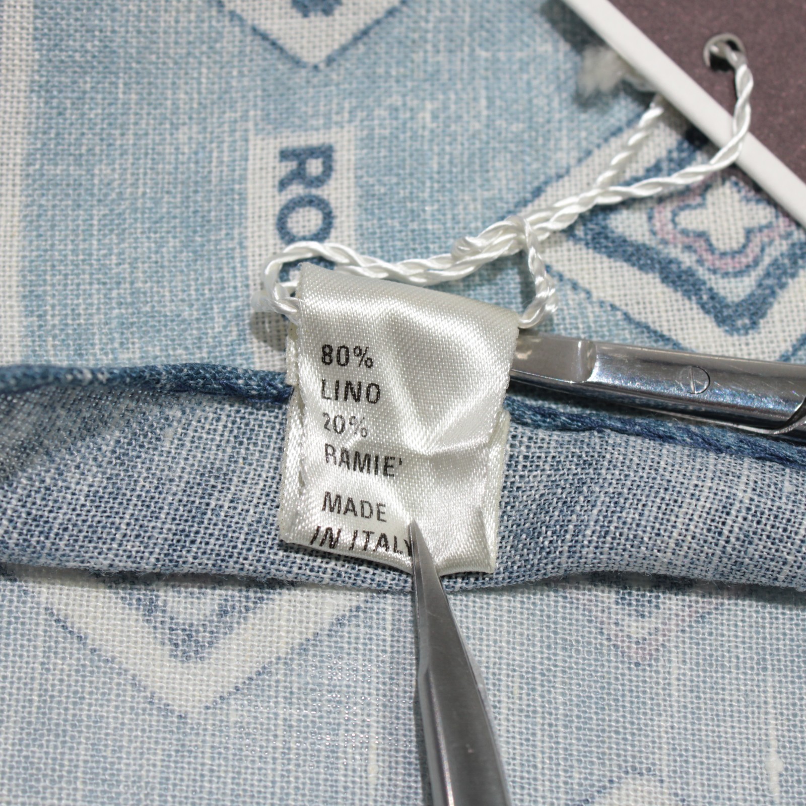 как выглядит Roda NWT Linen Blend Pocket Square In Blue White Geometric Print Made in Italy фото