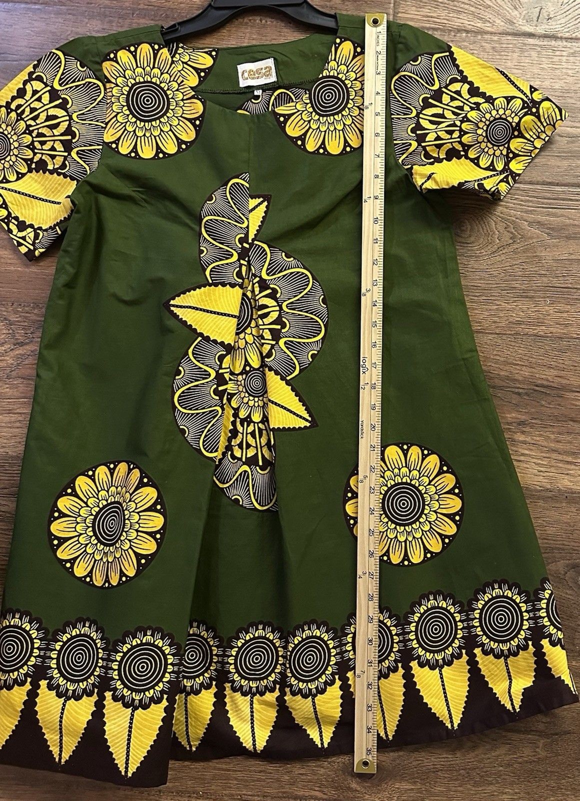 как выглядит Cesa African Wax Print Dress Women s M Green Yellow Handmade Pockets Ankara Knee фото