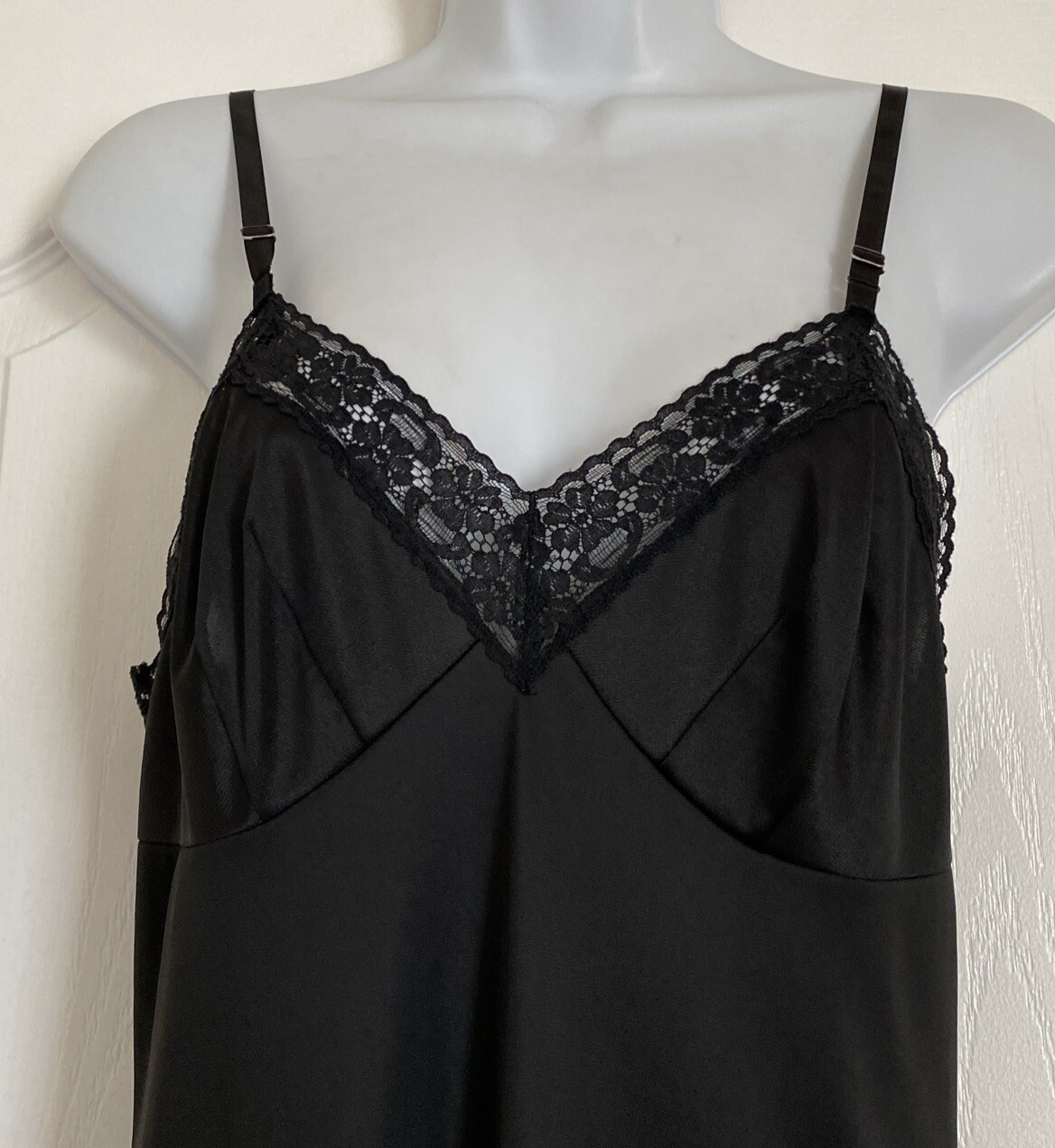 Vintage VANITY FAIR Black Silky Nylon w/ Lace Full Slip Lingerie 32L - Free Ship
