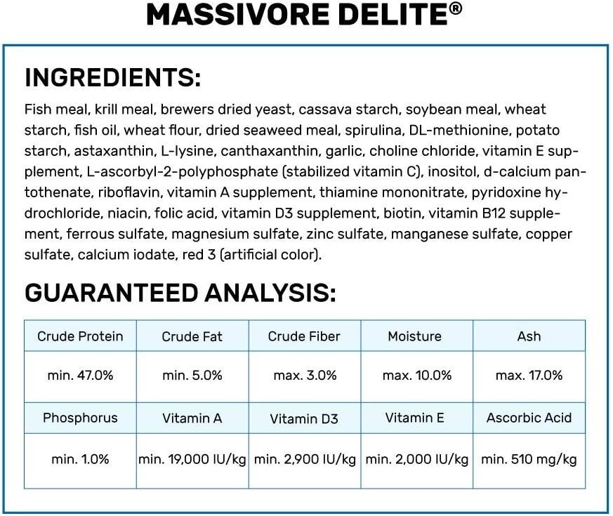 Hikari Massivore Delite Monster Fish Food Sinking Pellet Carnivore Diet 13.4 oz