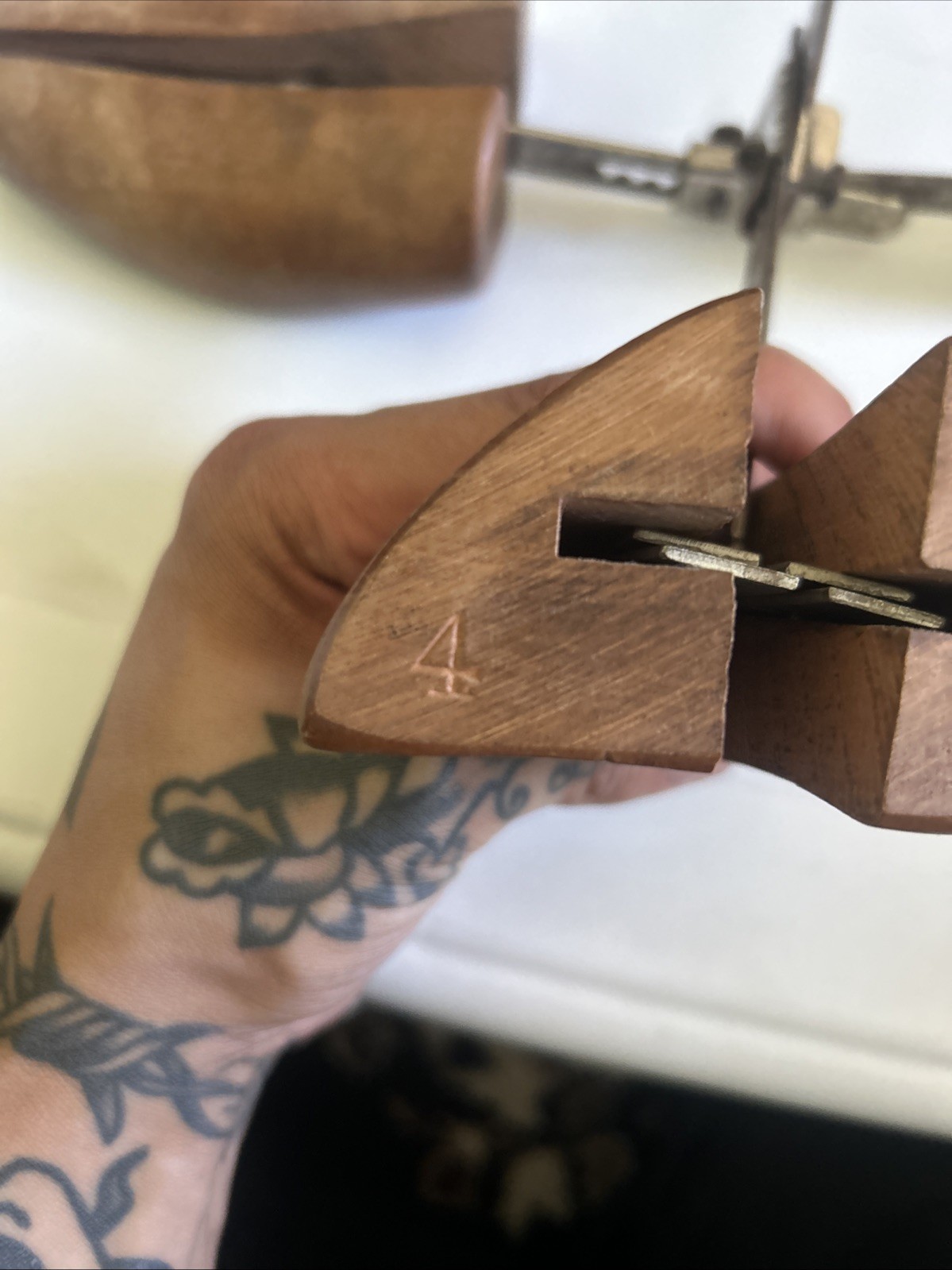 как выглядит Pair Vintage Wooden Shoe Tree Stretchers w/Adjust Hinged Split Toe фото