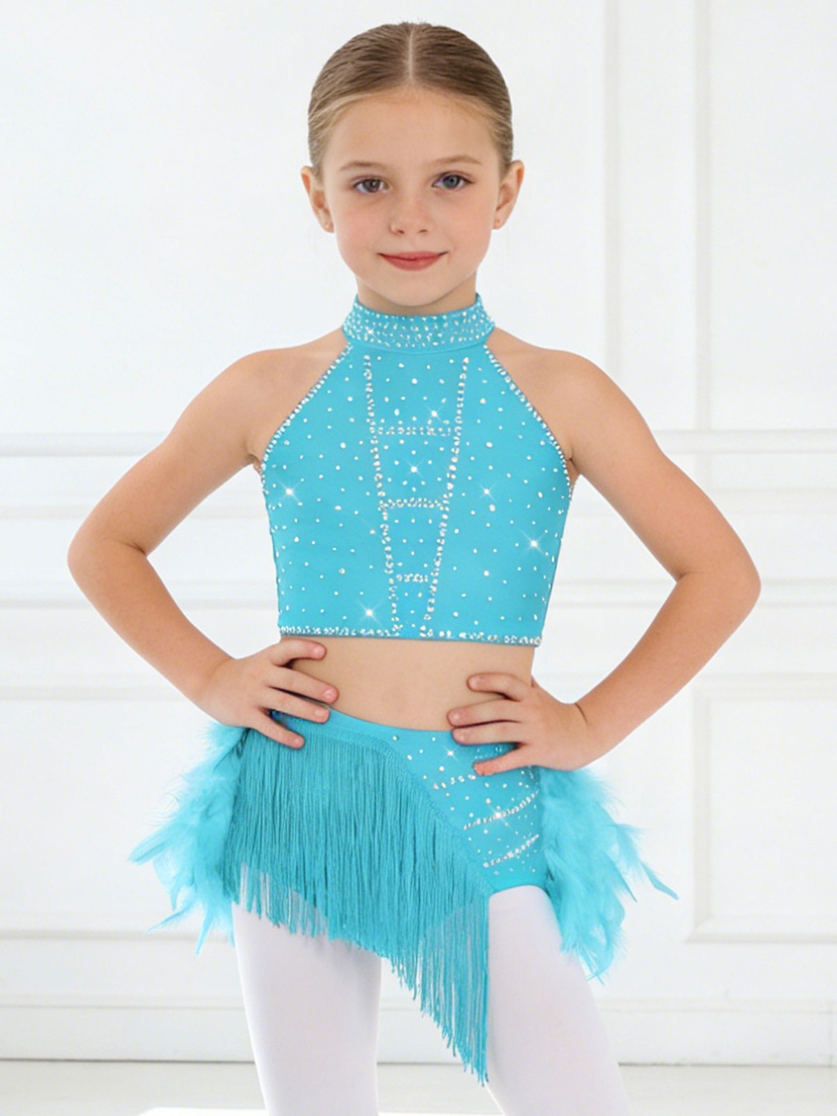 Girl Shiny Fringe Skirted Dance Outfit Latin Jazz Dance Performance Costumes