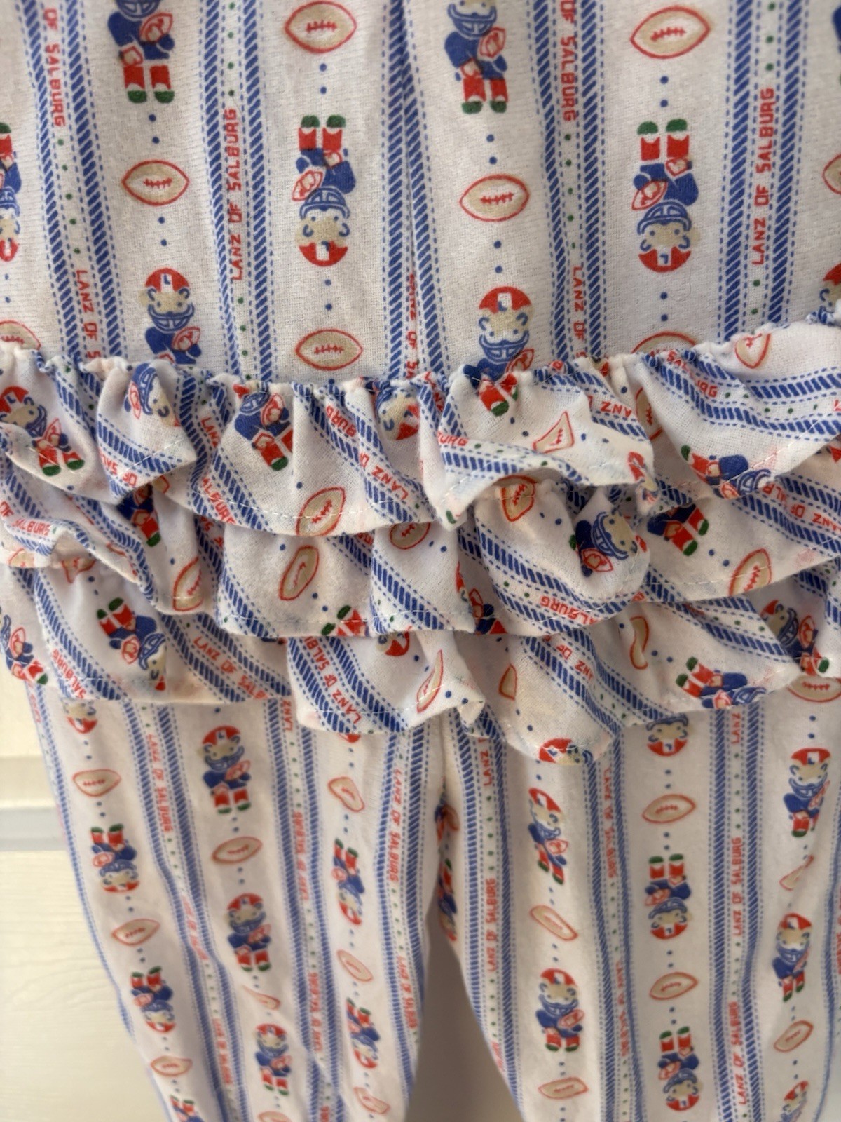 как выглядит Vintage Lanz of Salzburg 2T Toddler Girl Footie Zip Pajamas Ruffle Football USA фото