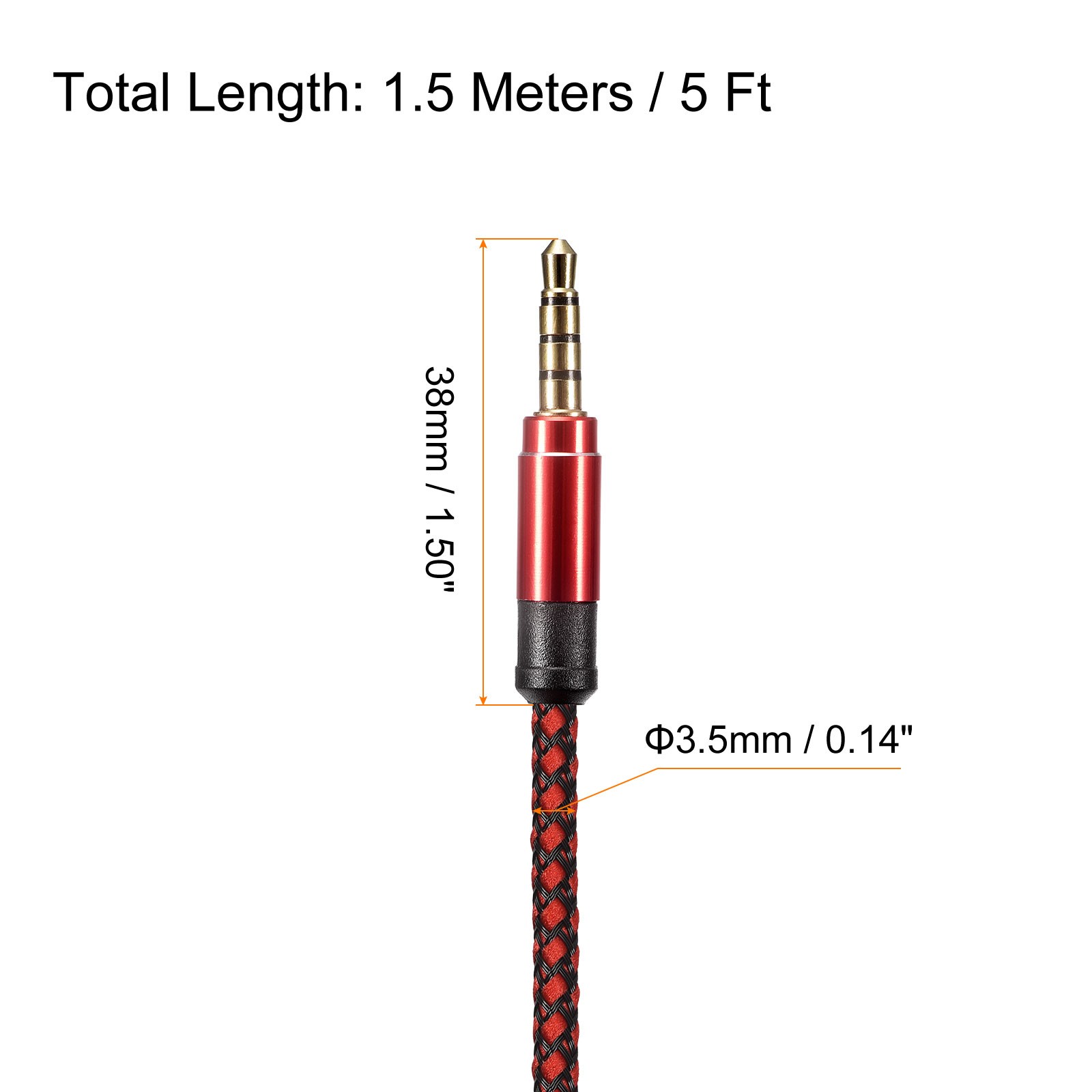 Aux Cable 3.5mm Male to Male Nylon Braided 5Ft Auxiliary Cord Red