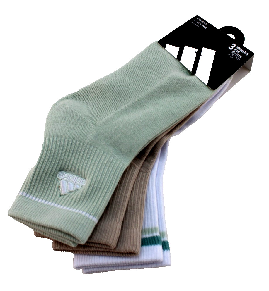 New ADIDAS Women's 5-10 High Quarter 3 Pairs Multi-Color Stitched Logo Socks