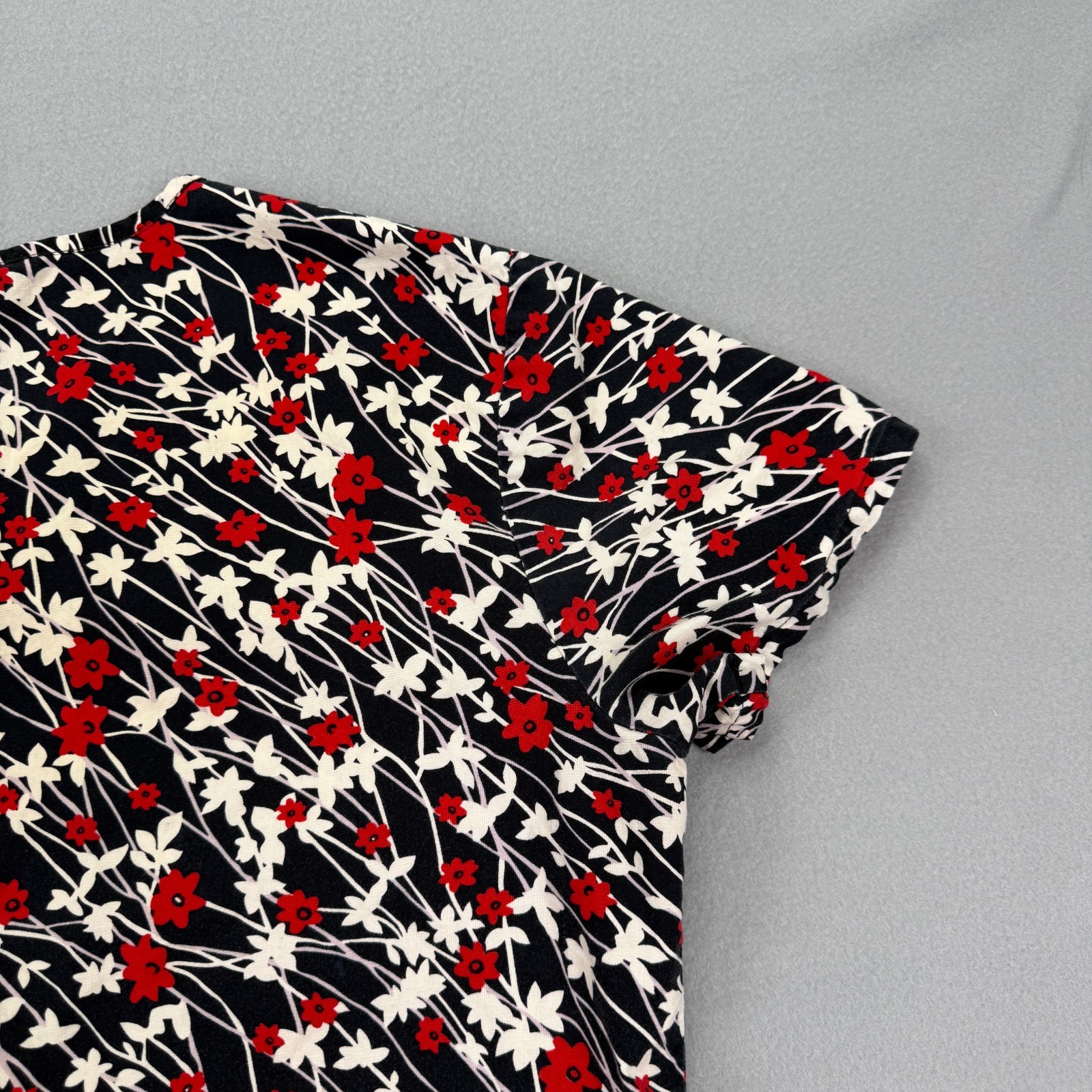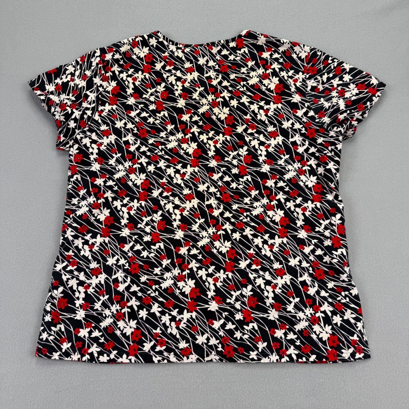 как выглядит Cherokee Studio Scrub Top Womens Small Black Red Floral Pockets Cotton 3805C фото