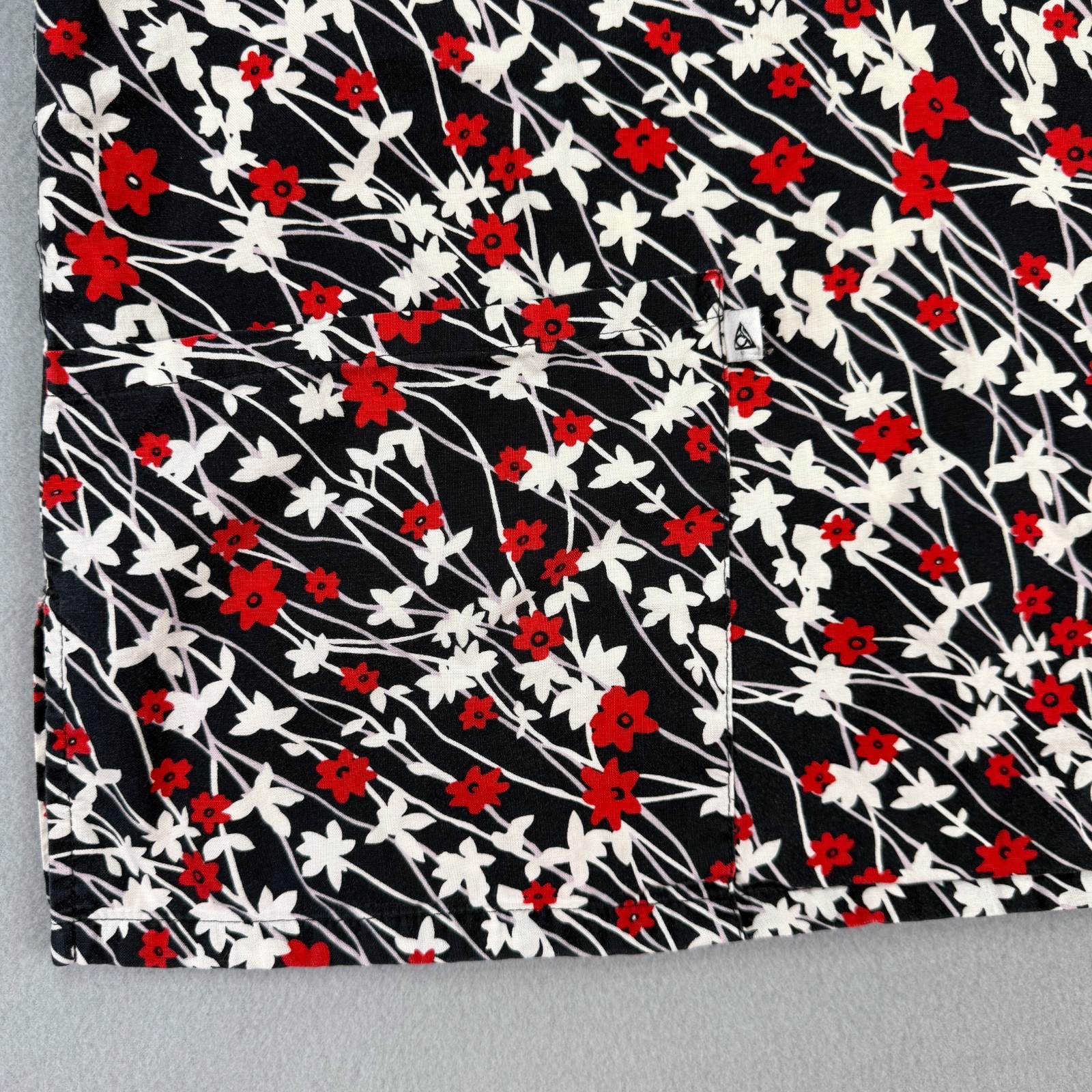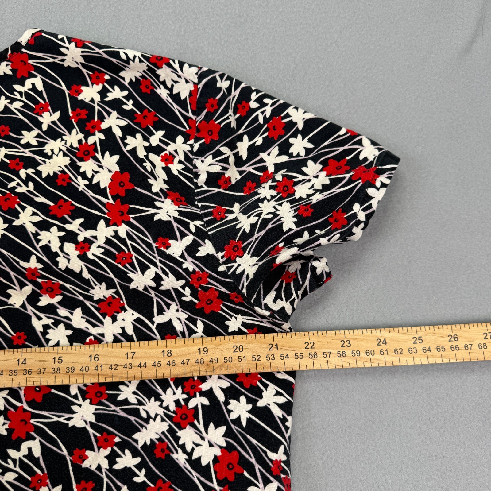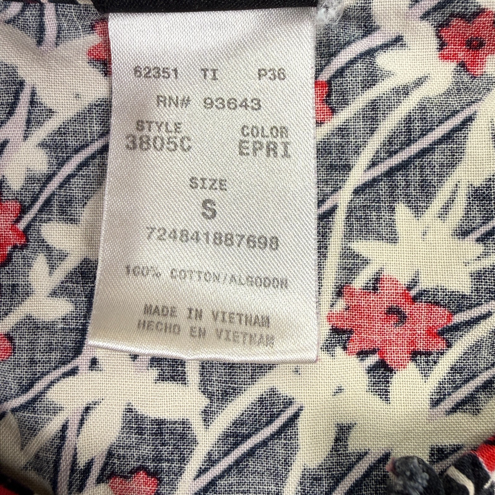 Cherokee Studio Scrub Top Womens Small Black Red Floral Pockets Cotton 3805C